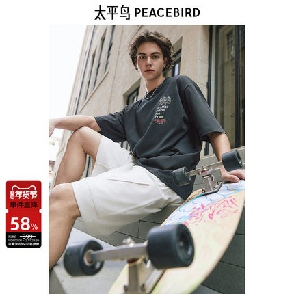太平鸟男装 潮流背后印花短袖t恤男百搭圆领重磅宽松青体恤男