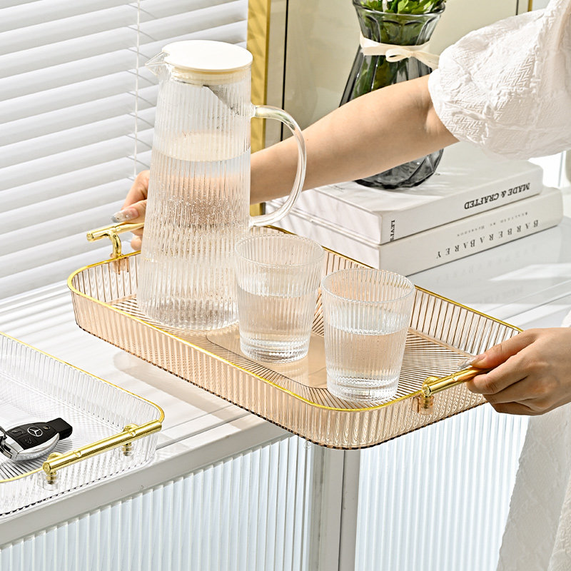 轻奢托盘家用客厅新款带提手水果盘餐盘茶果盘塑料放茶杯水杯茶盘