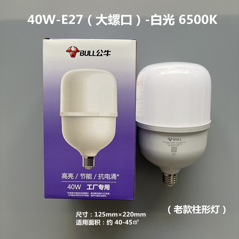 公牛爱眼LED球灯泡E27螺口节能螺旋厂房户外柱形光源30W40W24W50W