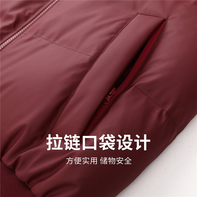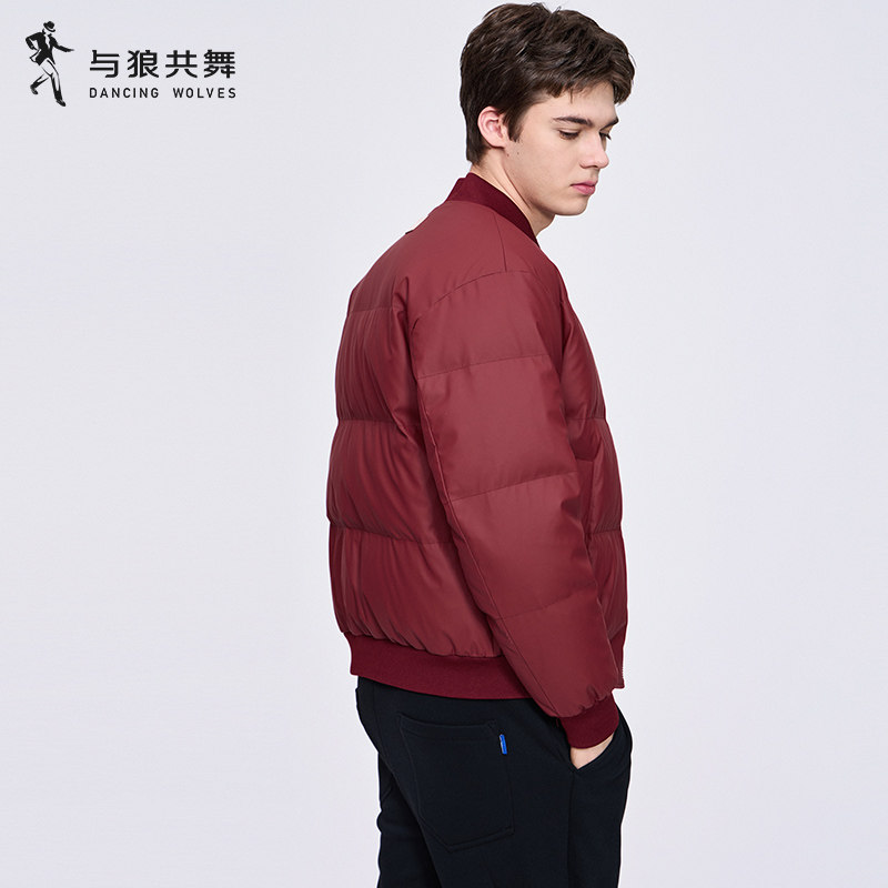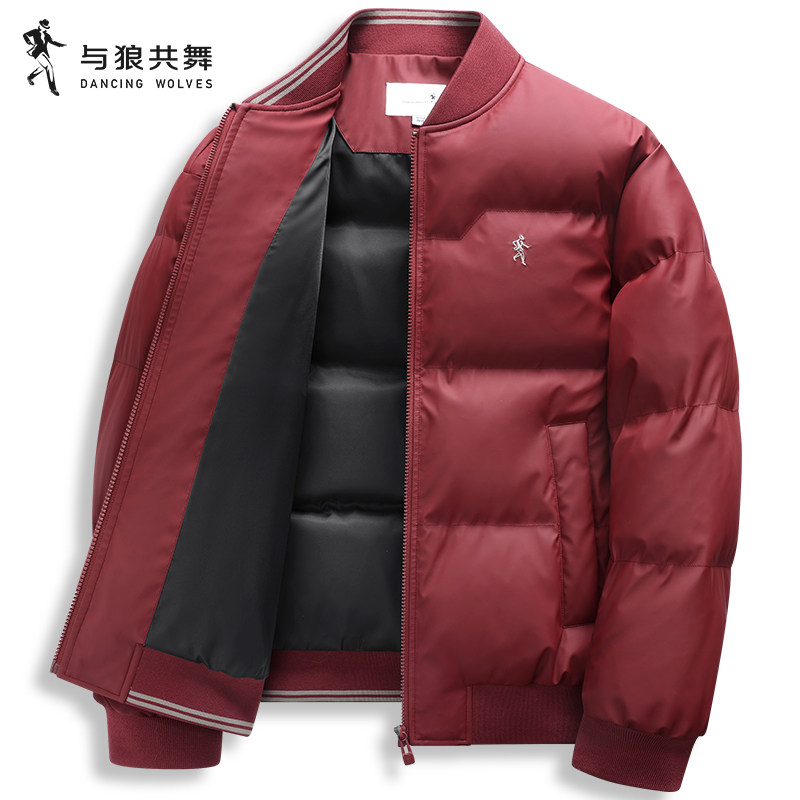 与狼共舞棒球领羽绒服男装2025冬季新款通勤保暖深红色飞行员外套