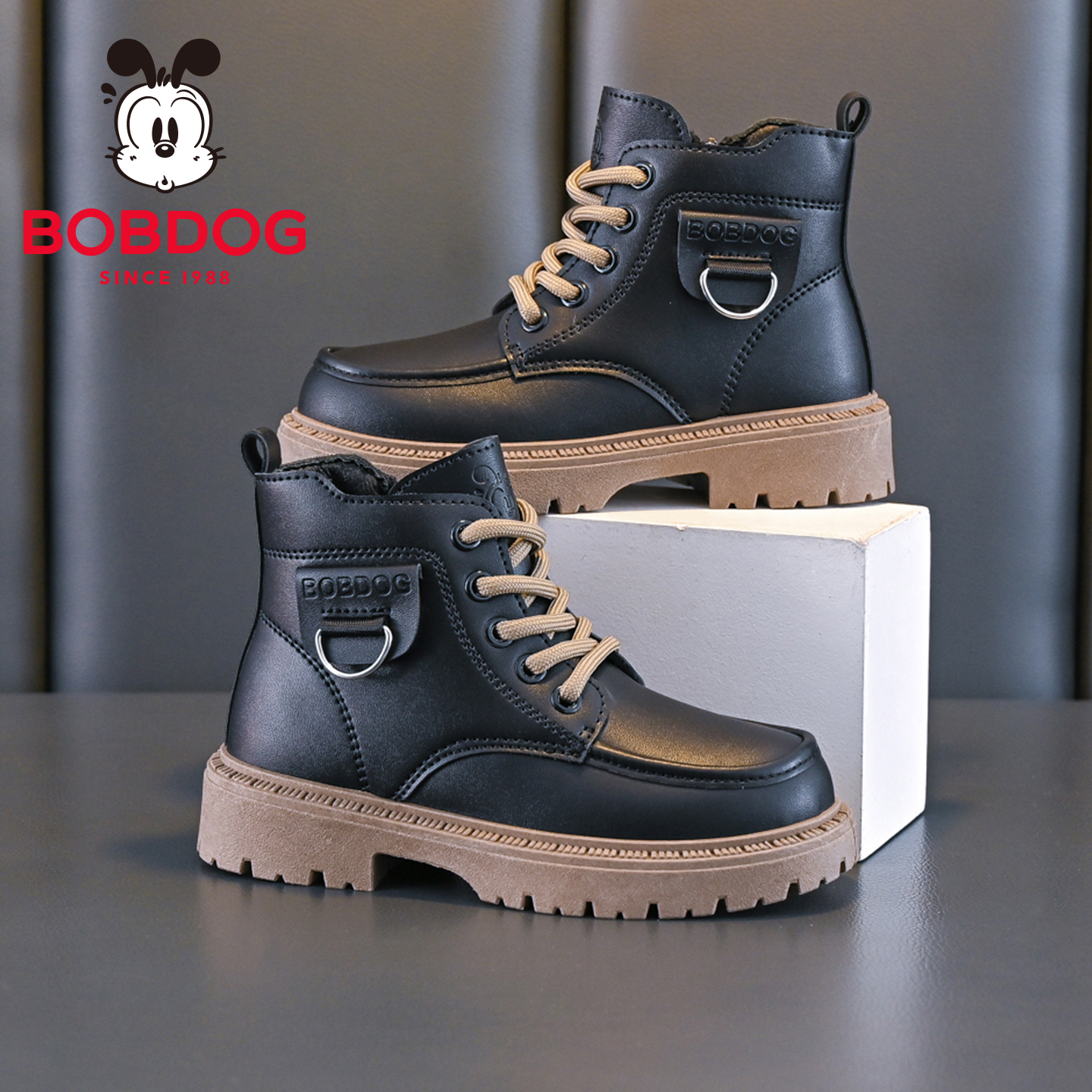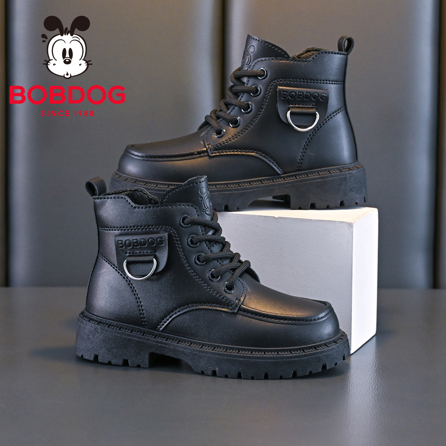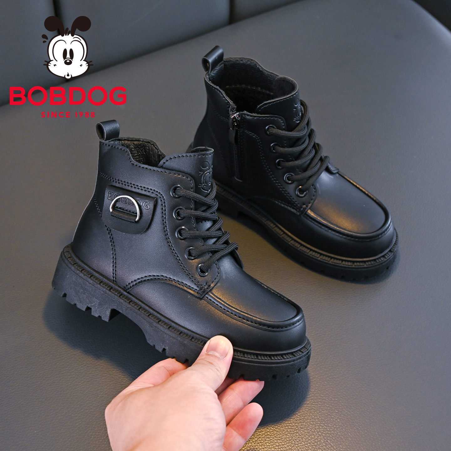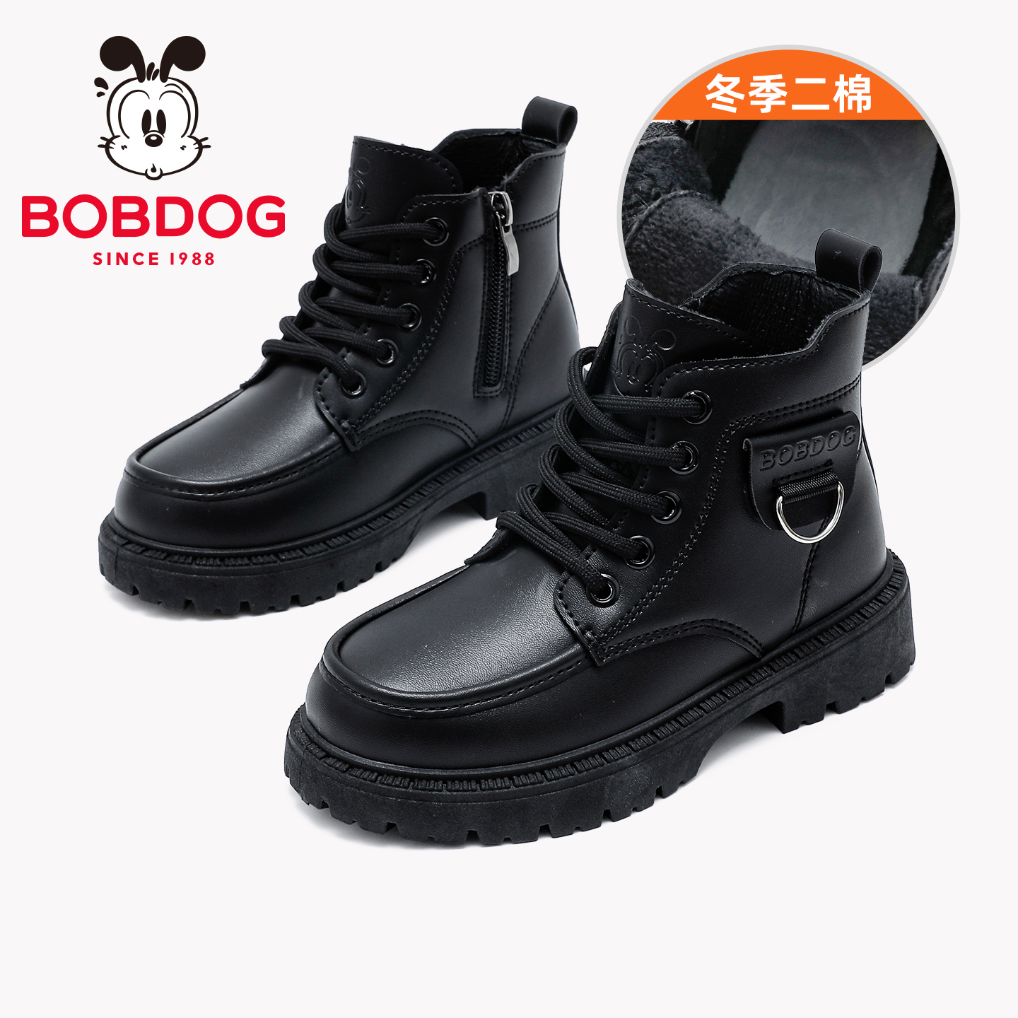 巴布豆童鞋儿童靴子男童马丁靴二棉鞋冬季加绒保暖女童洋气小短靴