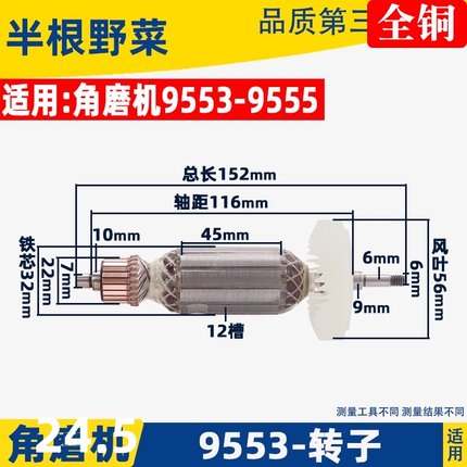 适用牧田9553HB/9553HN/9555角磨机转子角磨机配件电机