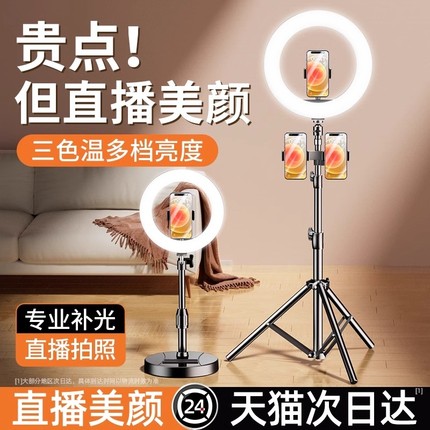 2024美颜手机直播支架补光灯设备全套抖音拍摄支撑架自拍新款桌面落地网红主播专用专业拍照神器多功能三脚架