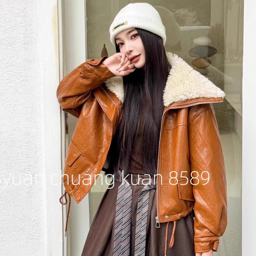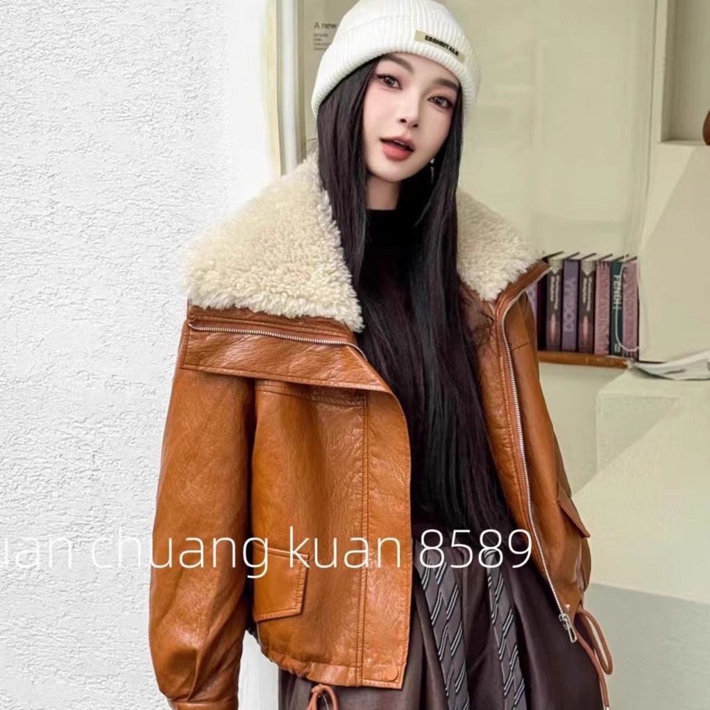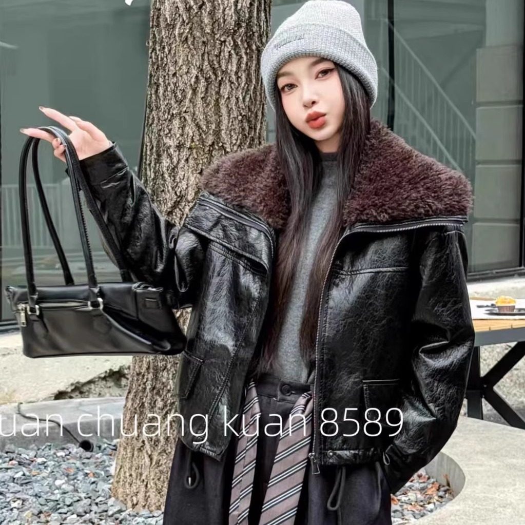 小个子2026新款加厚皮衣女短款毛领加绒保暖外套黑色皮毛一体夹克