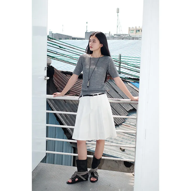 DVZ圆领时尚气质2025夏季正肩短袖肌理针织衫女新款打底MY0032