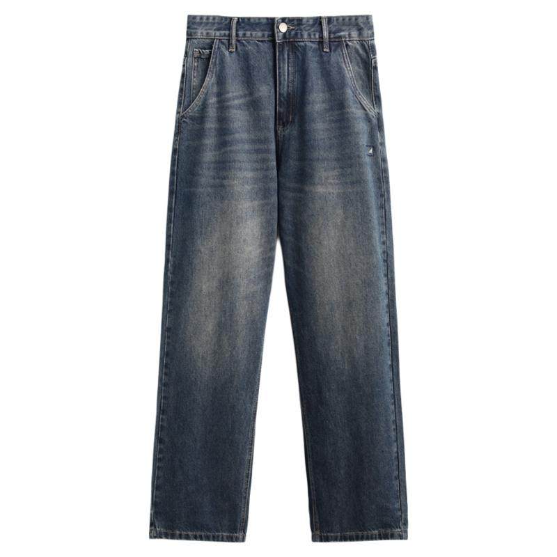 美式复古水洗做旧宽松直筒牛仔裤