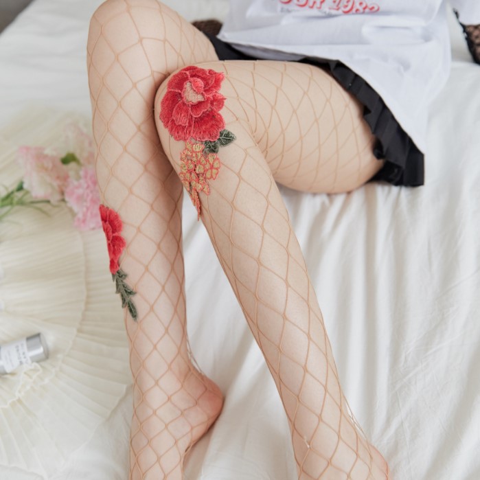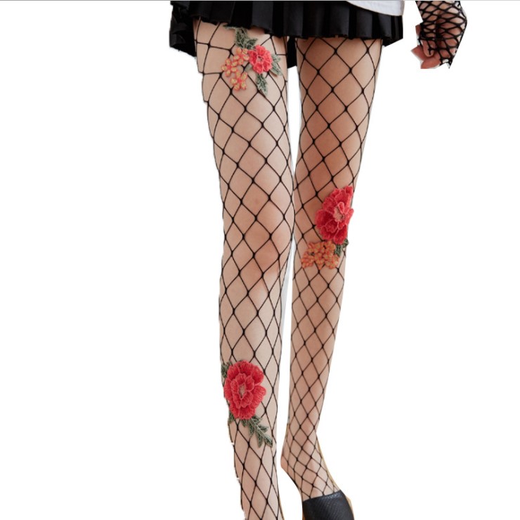 韩版性感刺绣花朵大网格渔网袜镂空新品薄款连裤袜女士美腿袜网袜