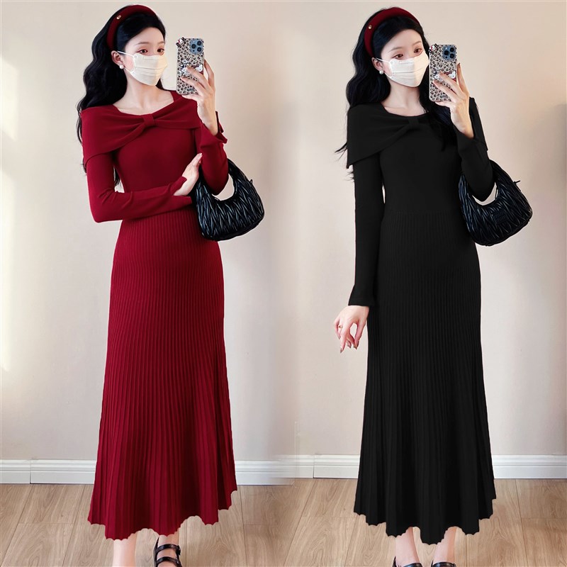 孕妇装秋冬装简约长袖针织连衣裙时尚韩版怀孕裙子冬装保暖打底裙