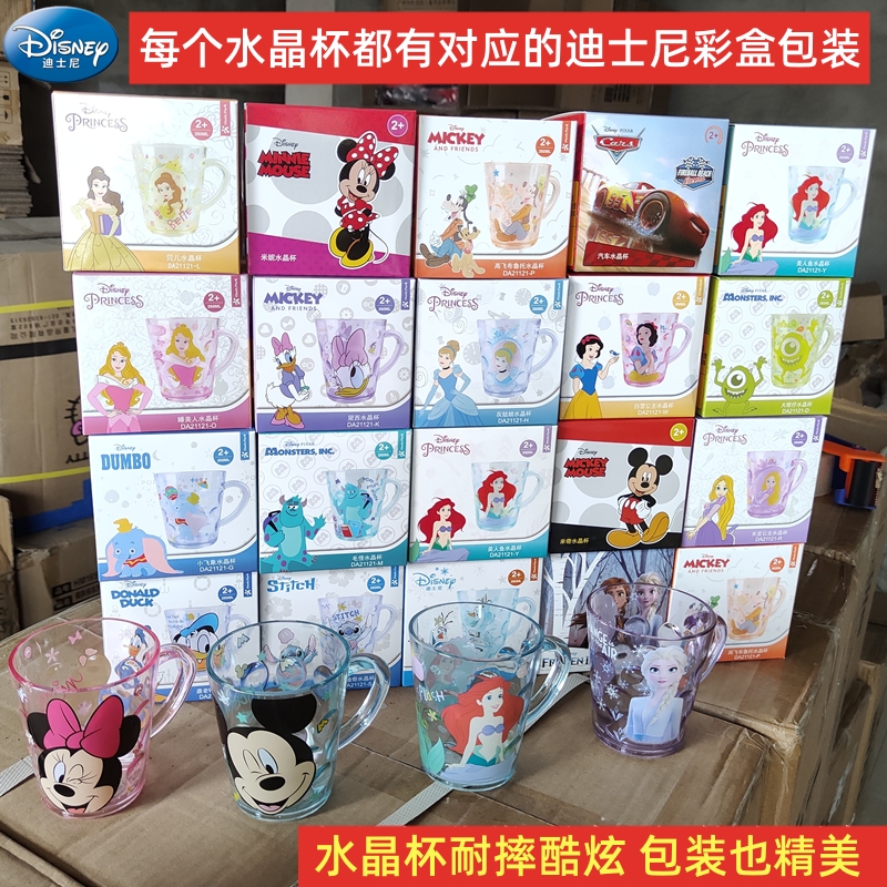 正品迪士尼儿童水杯家用漱口杯卡通水晶米奇米妮艾莎麦昆喝水杯