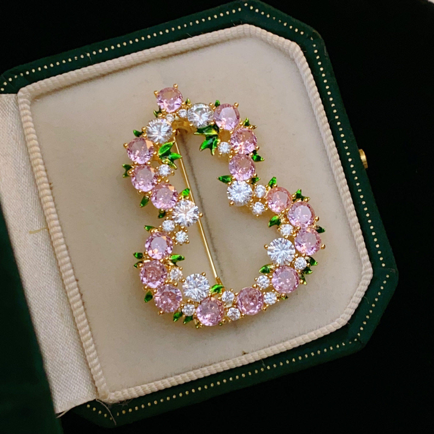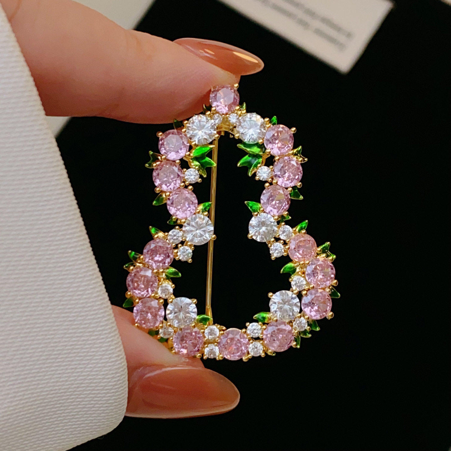 新中式粉色葫芦胸针女精致小众花朵水钻别针时尚西装礼服百搭配饰