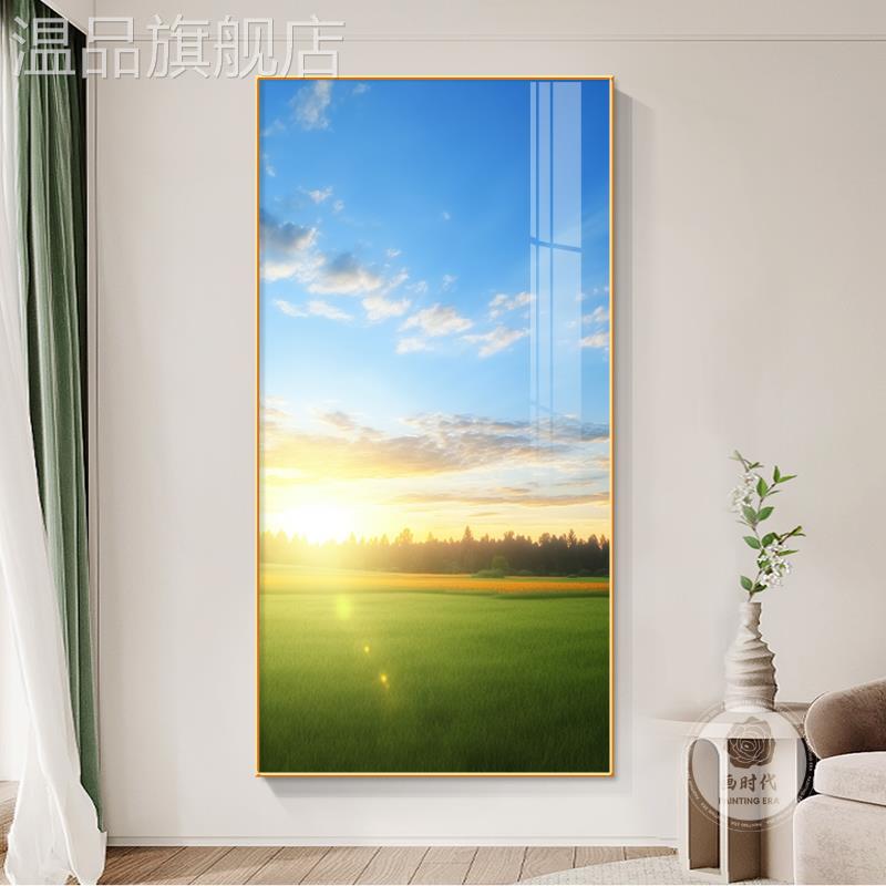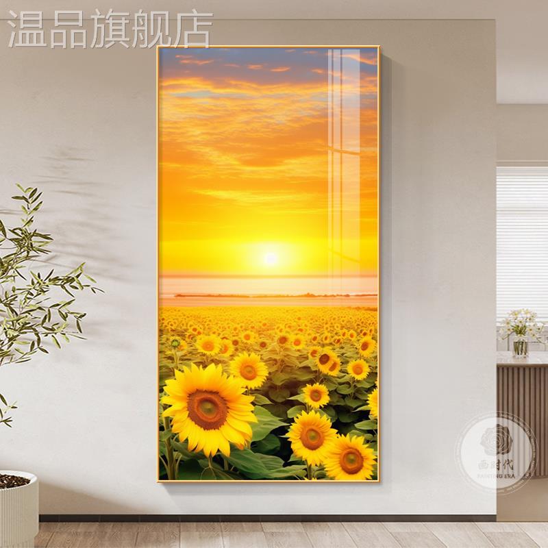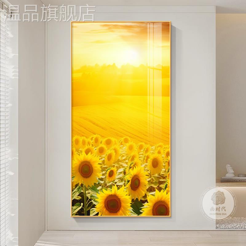 旭日东升玄关装饰画向日葵现代简约田园风景挂画进门走廊过道壁画
