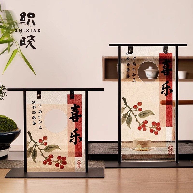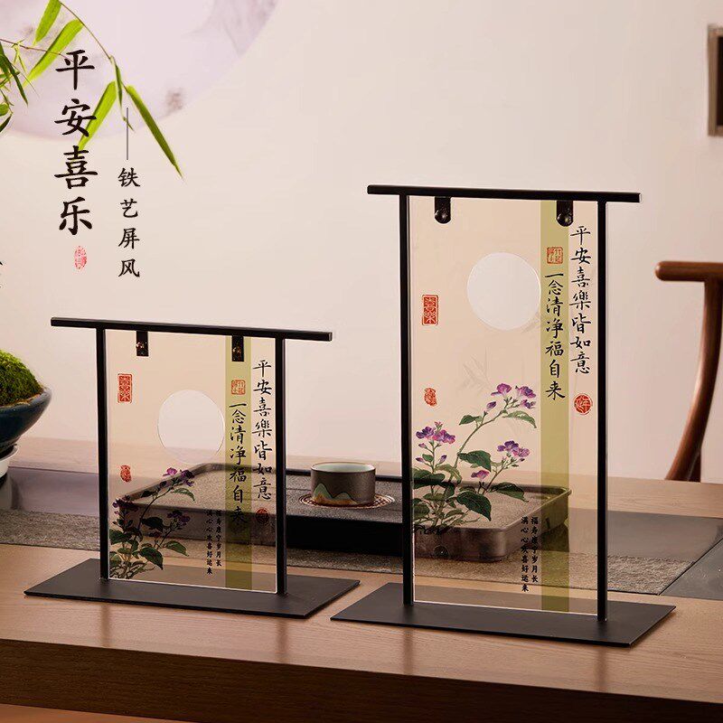 新桌面小屏风中古风茶室茶台宋代美学入户玄关桌面装饰品