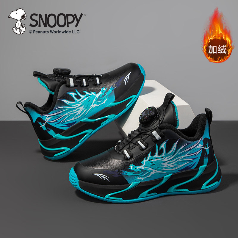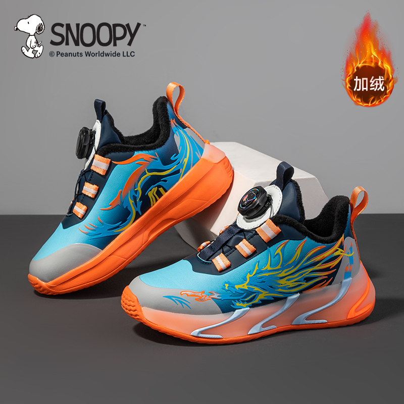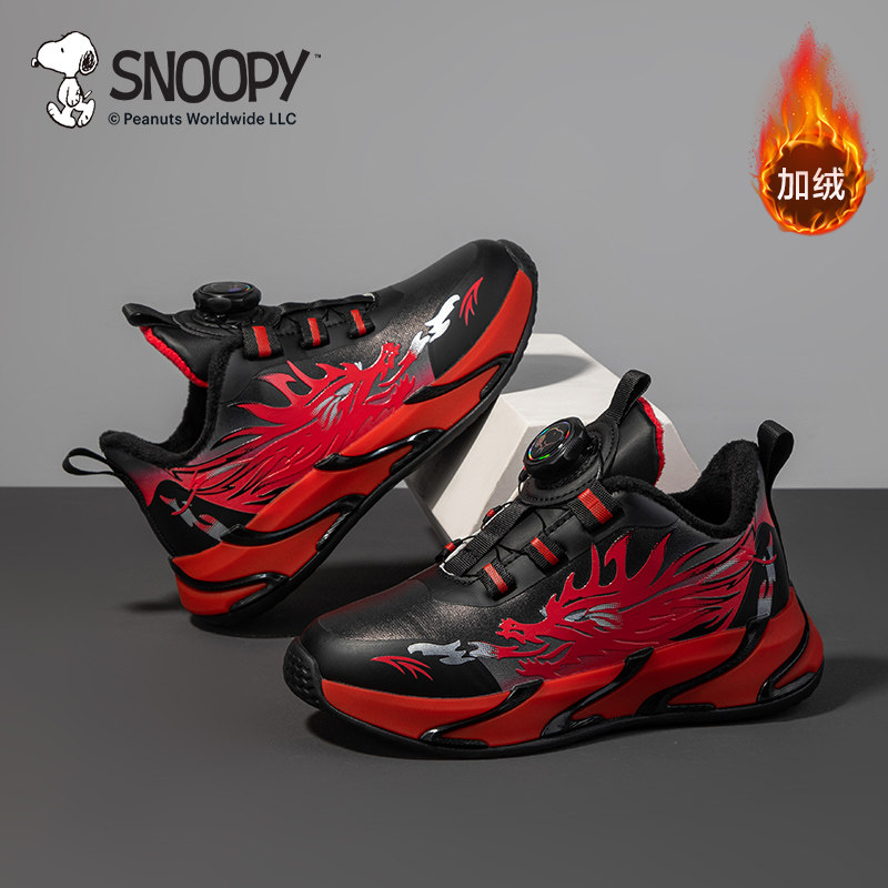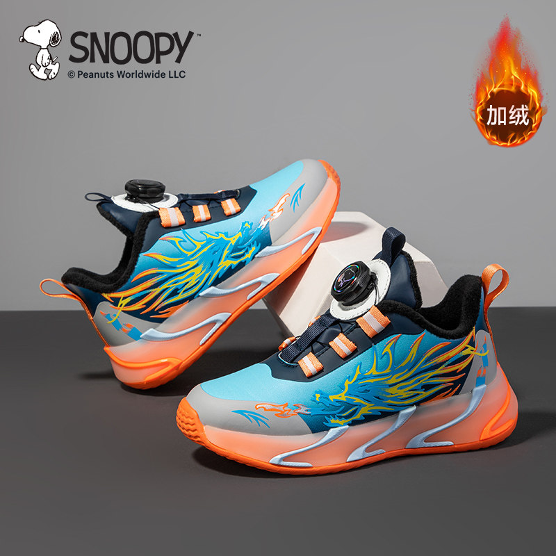 史努比男童二棉运动鞋冬季新款男中大童加绒休闲鞋时尚薄绒跑鞋40
