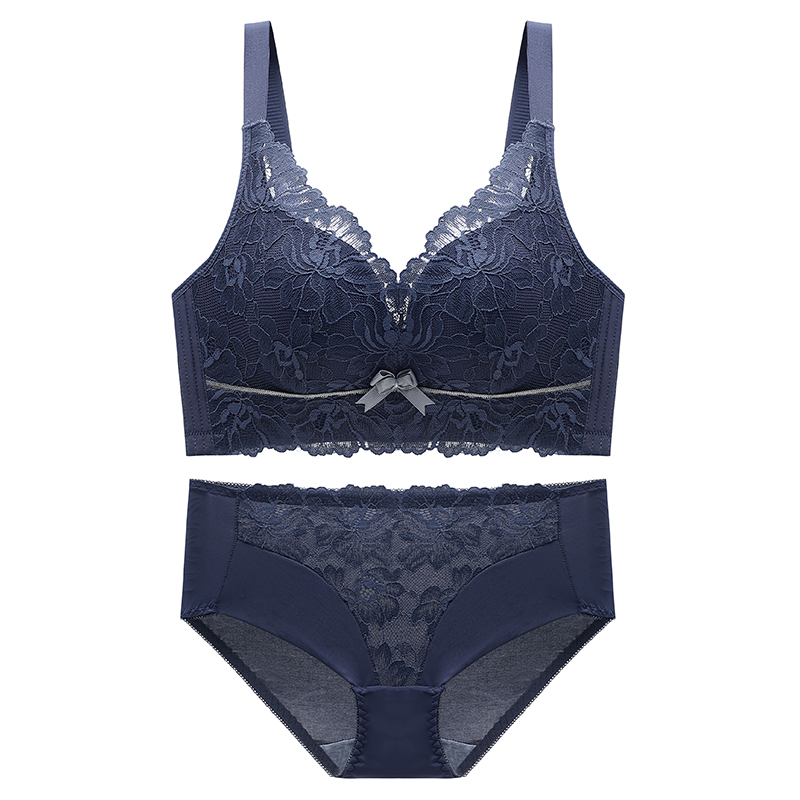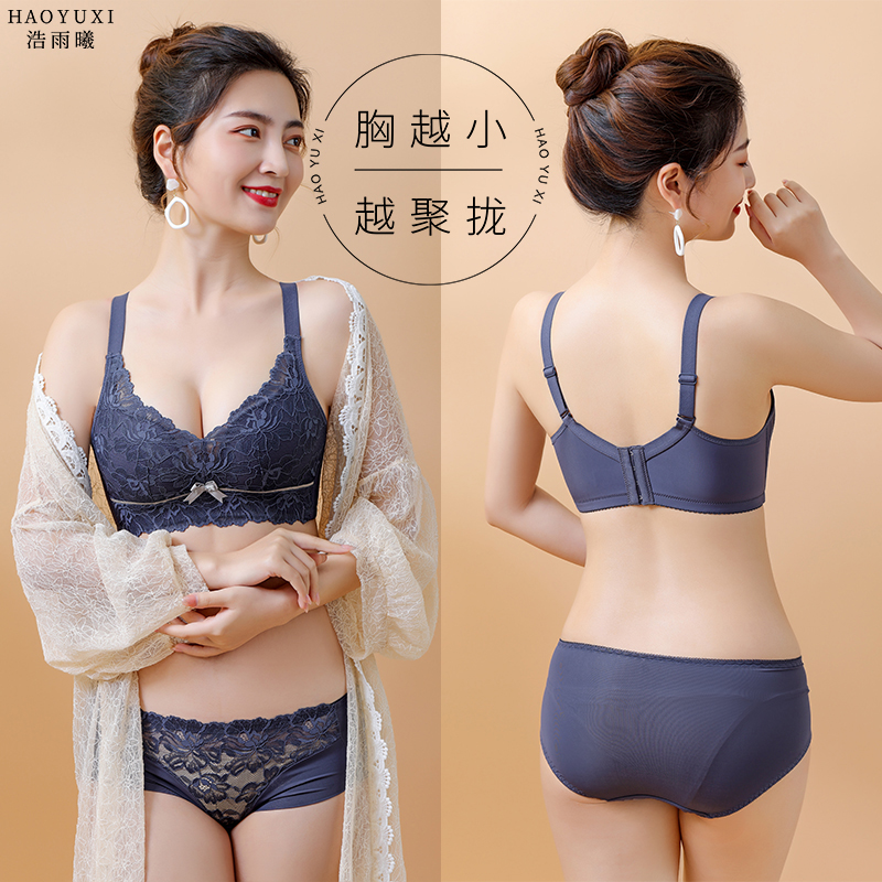 新款内衣女无钢圈小胸聚拢收副乳上托防下垂胸罩蕾丝乳胶文胸套装