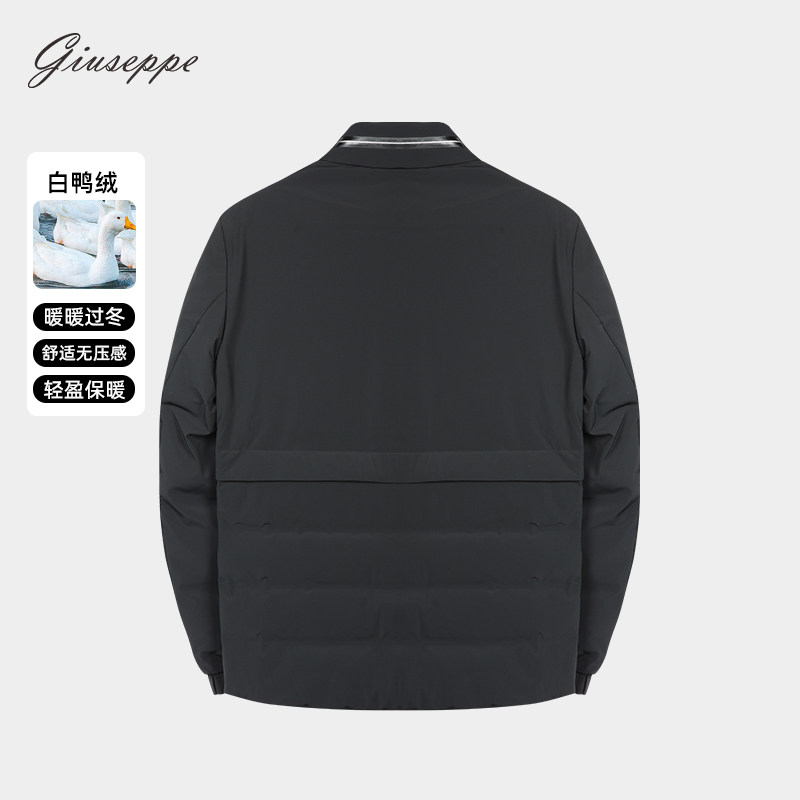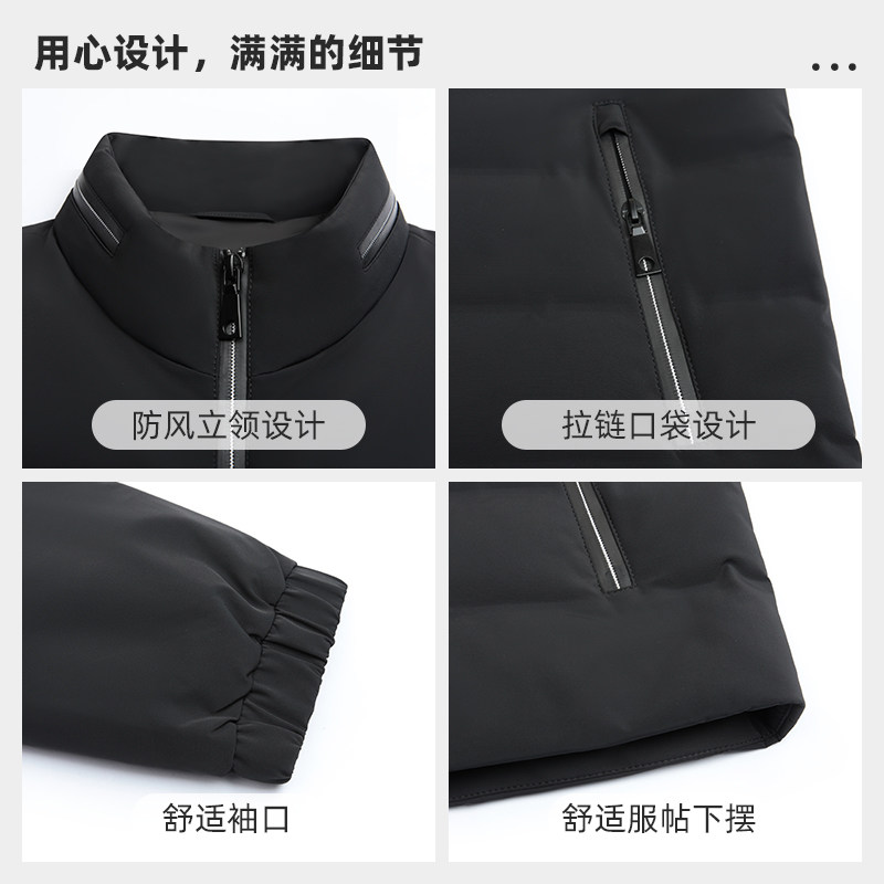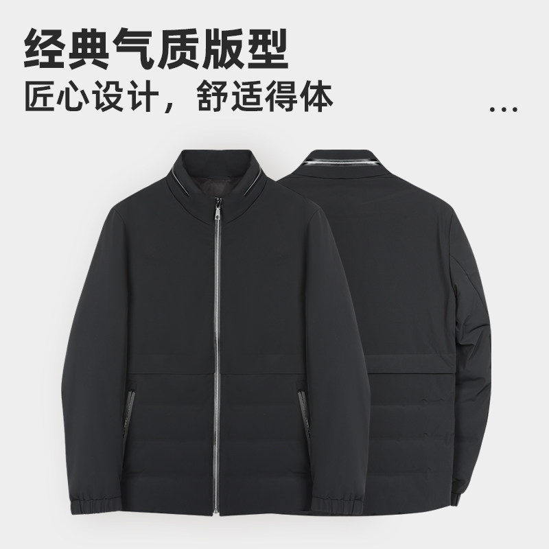 乔治白秋冬男拉链羽绒服休闲纯色外套防风保暖通勤日常白鸭绒上衣