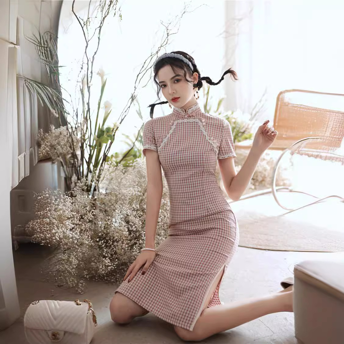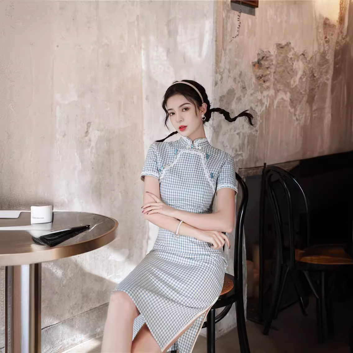 苏锦唐2025春夏新款女装棉麻旗袍裙改良版日常少女复古旗袍连衣裙