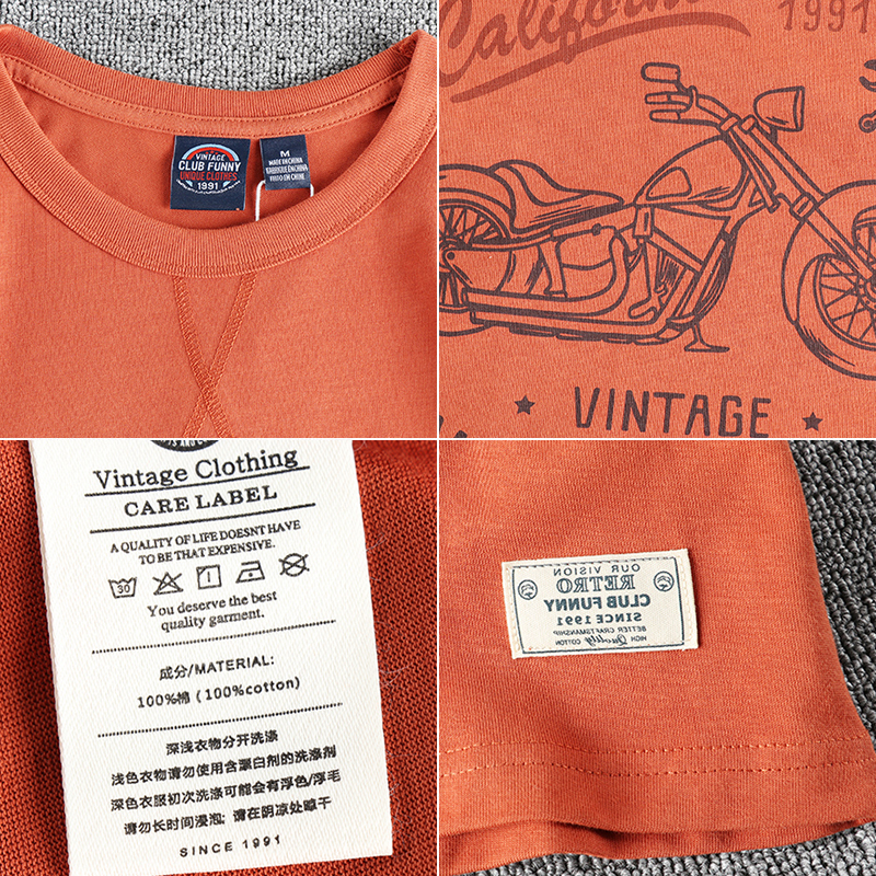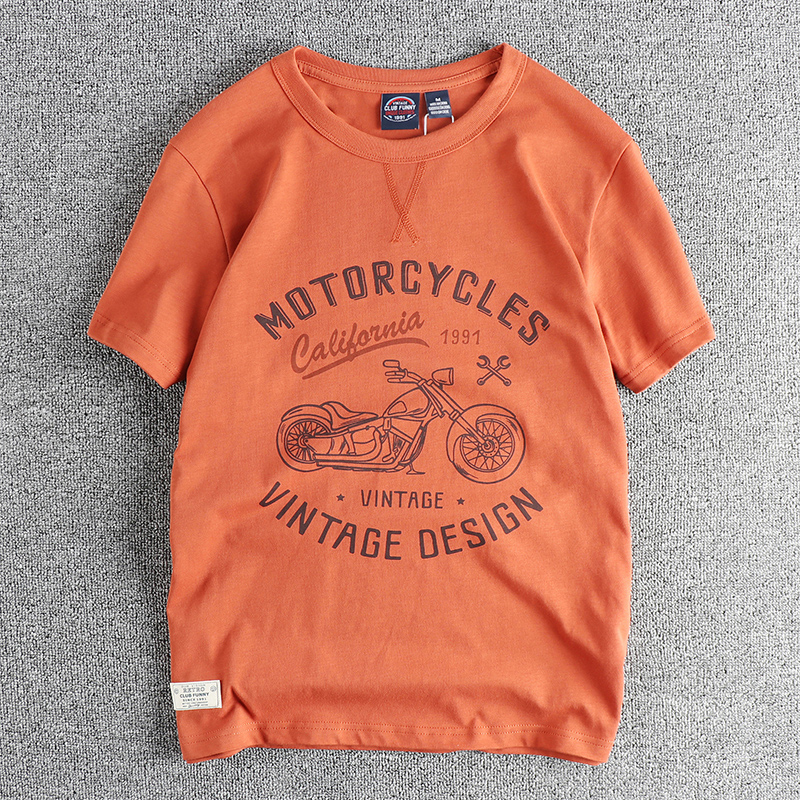 潮牌阿美咔叽复古机车图案短袖T恤男 280G双纱纯棉休闲半袖打底衫