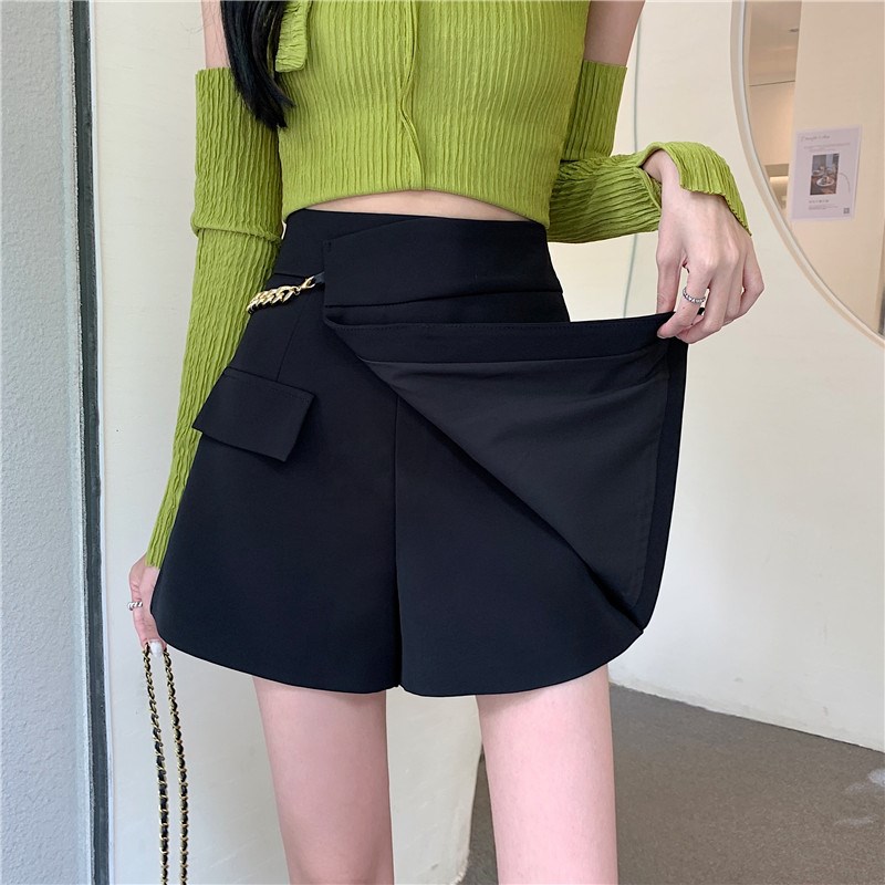 大码不规则西装短裤女春夏设计感休闲阔腿裤胖mm显瘦百搭黑色裙裤