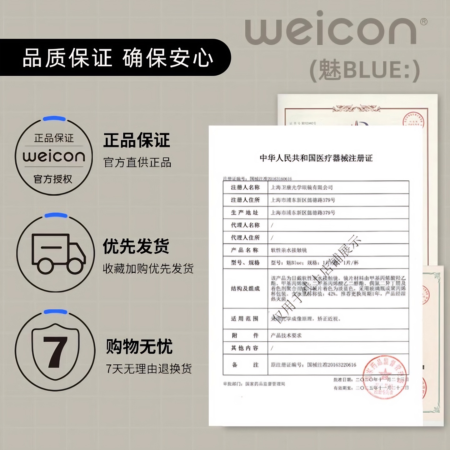 卫康隐形近视眼镜年抛盒2片装魅blue金装高度数薄旗舰店官网正品