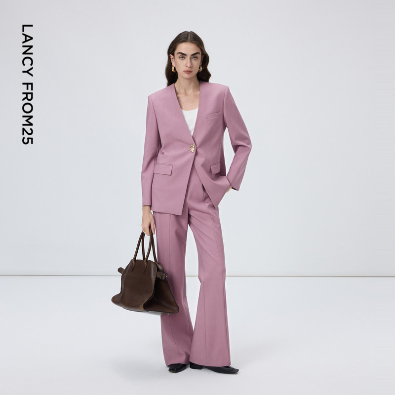 朗姿绵羊毛V领优雅气质通勤西装/西裤时尚西服套装2026年春季新款