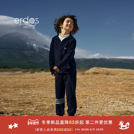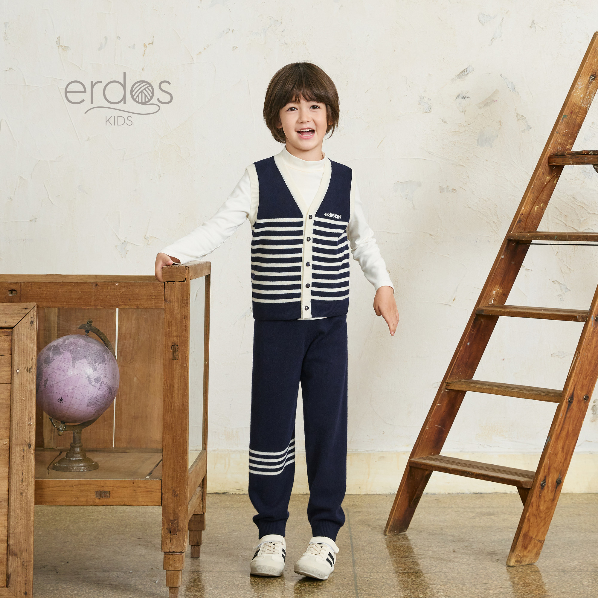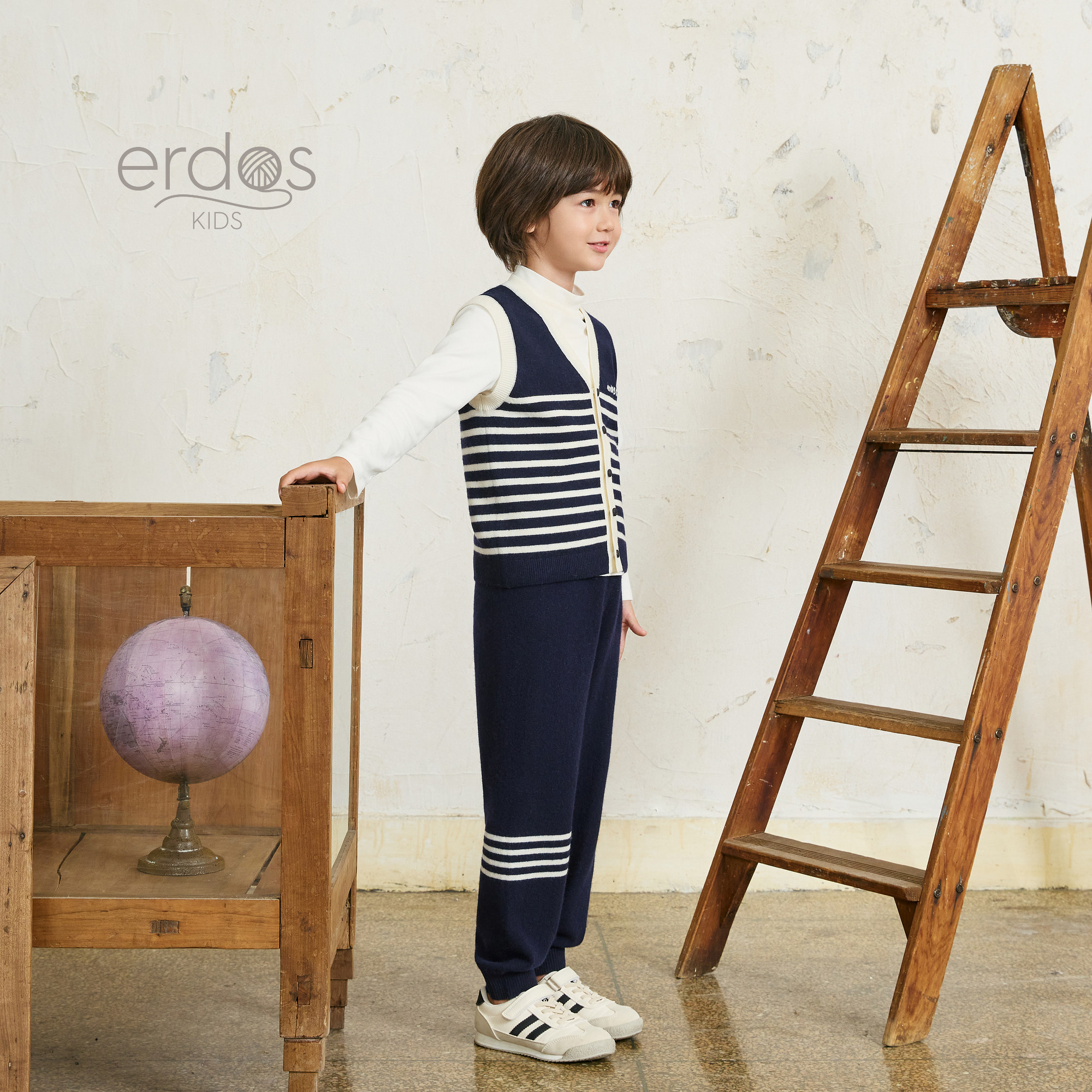 【100%山羊绒】鄂尔多斯童装25秋冬新品松紧腰条纹提花男童休闲裤