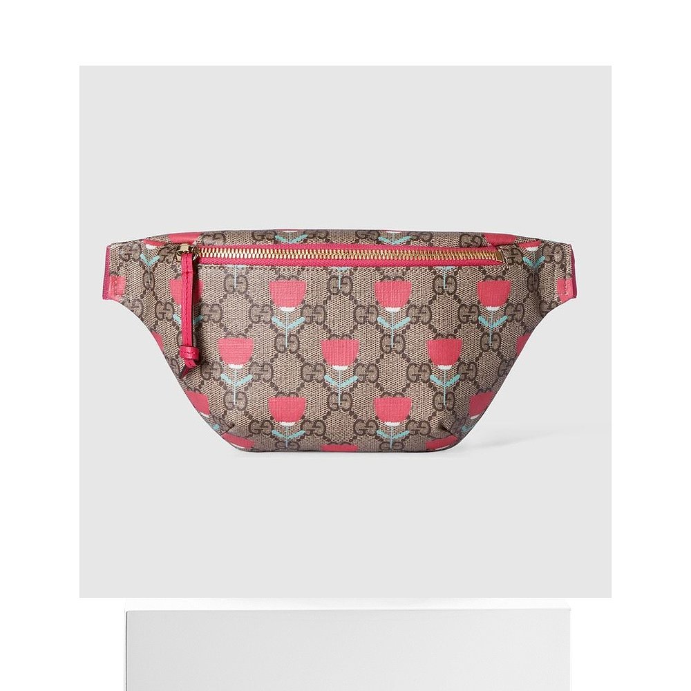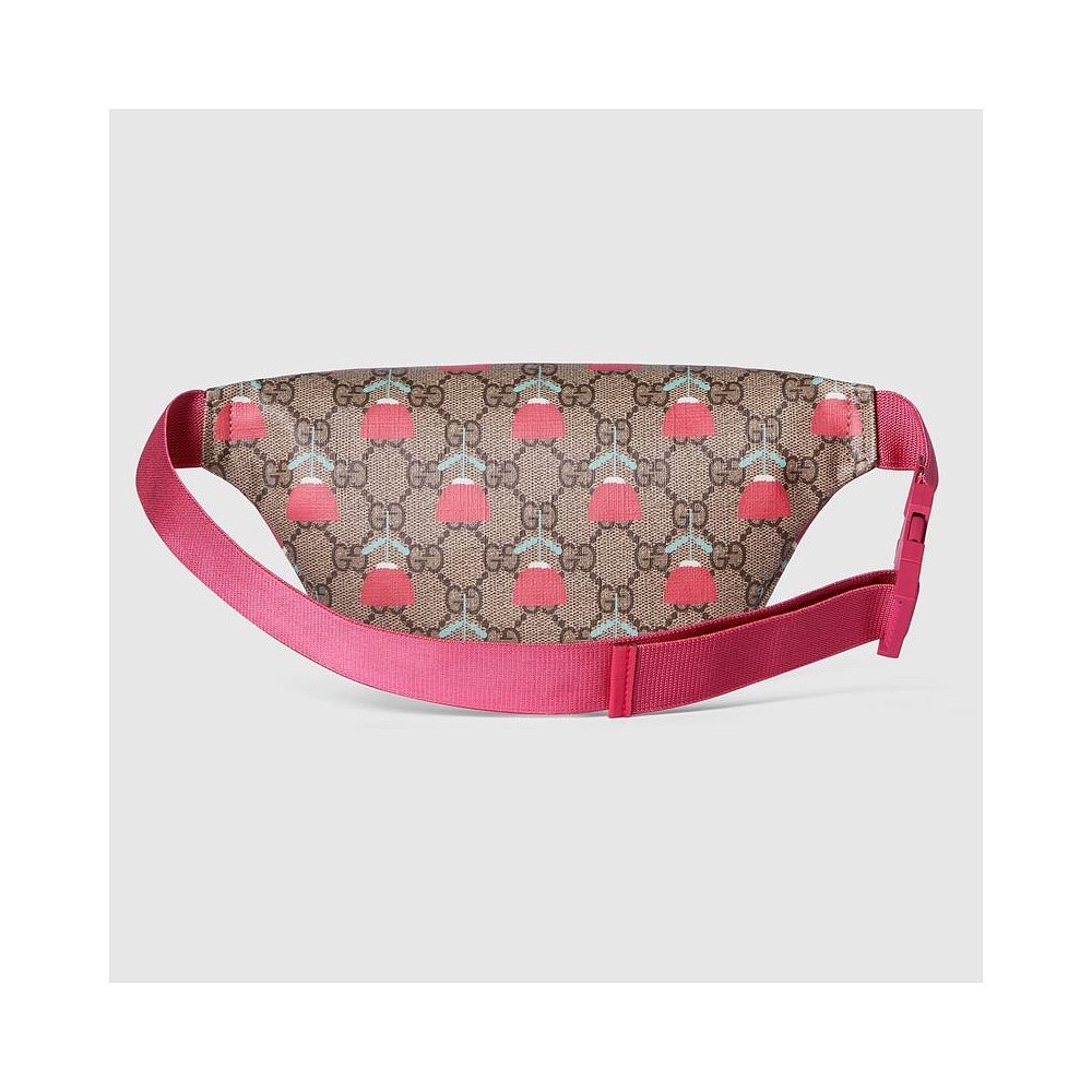 自营欧洲直邮Gucci古驰女孩米色和乌木色经典老花帆布儿童腰包