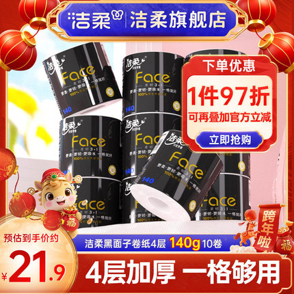 洁柔卷纸Face黑面子卷筒纸4层加厚纸巾140g/卷厕纸卫生纸实惠装
