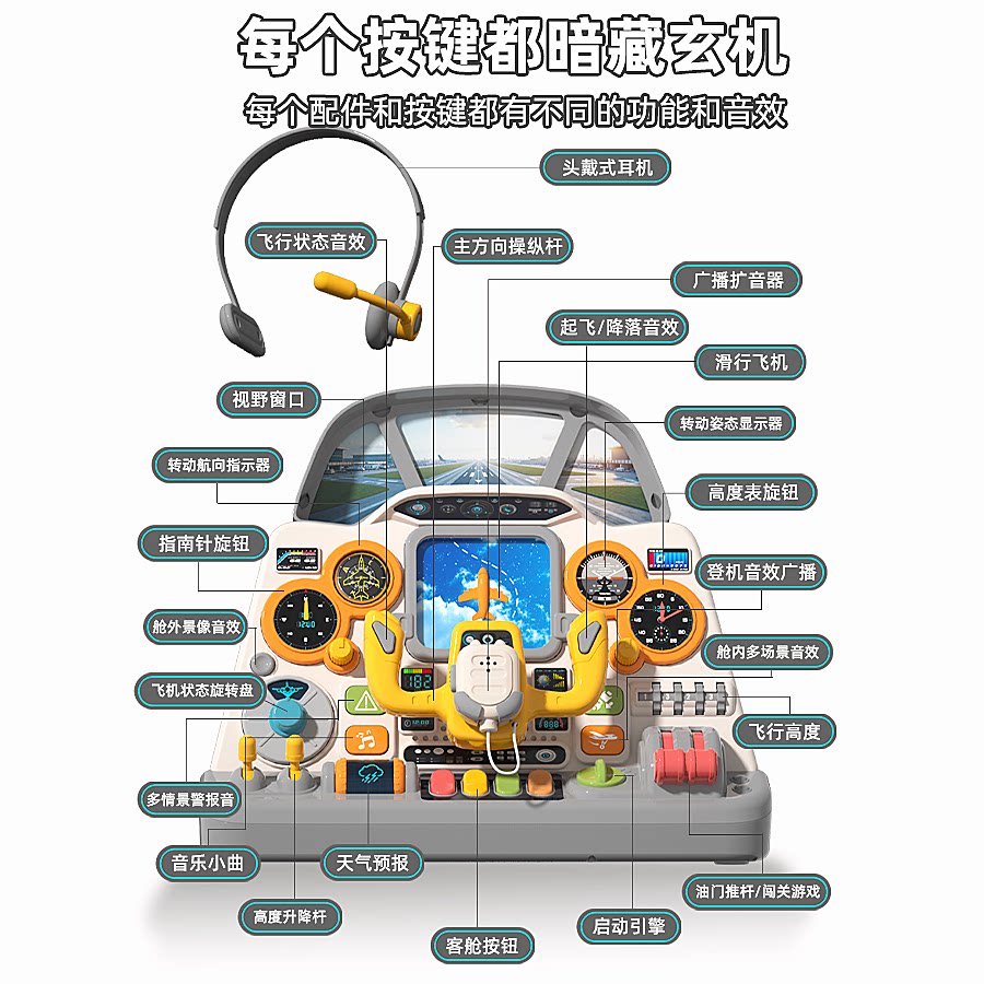 儿童模拟驾驶舱仿真飞机方向盘玩具宝宝蒙氏早教益智1-3岁2小男孩
