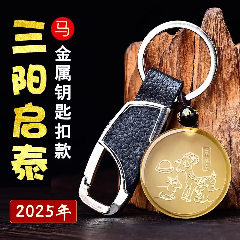 2025年黄水晶属马三阳启泰吊坠吉祥物招财运转钥匙扣
