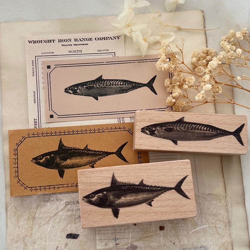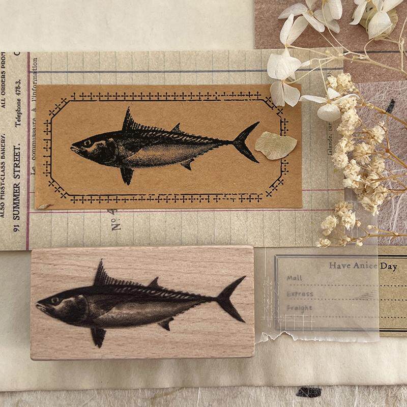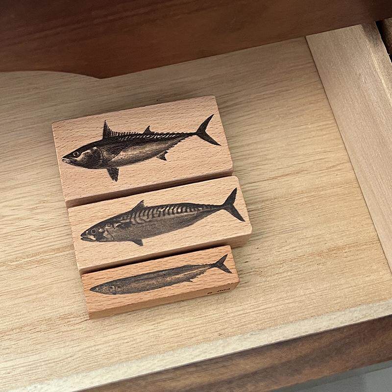 木质图案手帐印章复古高清图案文创印章手绘高细节仿真金枪鱼印章