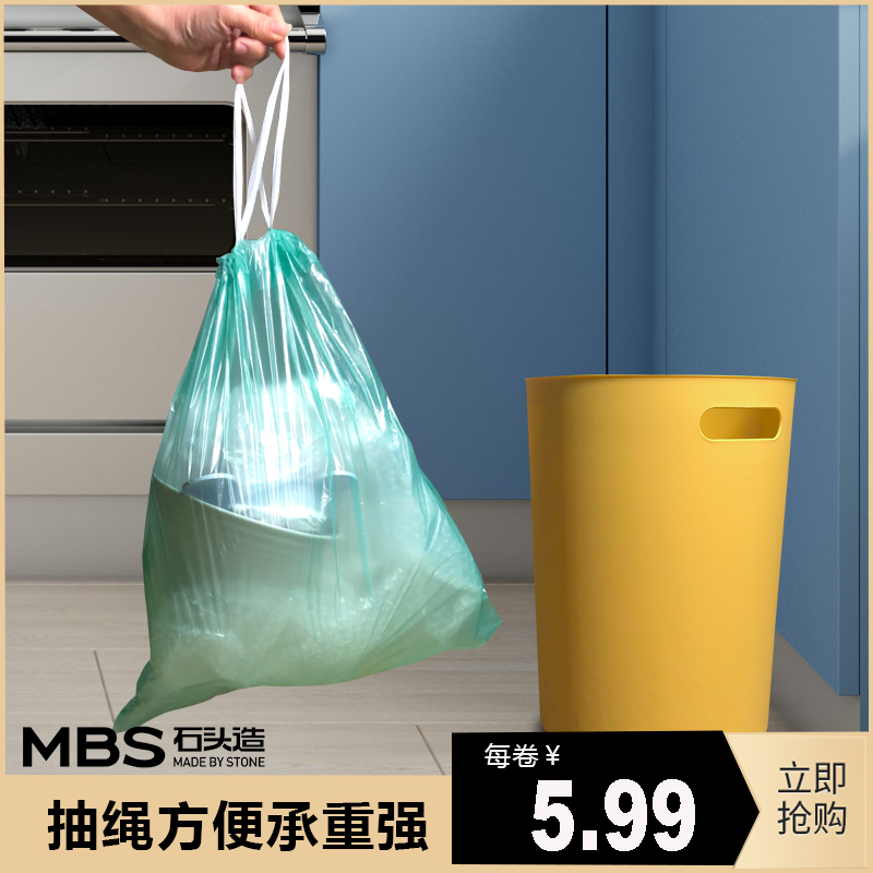 石头造抽绳垃圾袋家用加厚自动收口厨房塑料袋清洁袋子加厚防漏