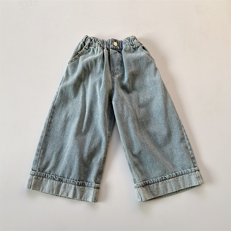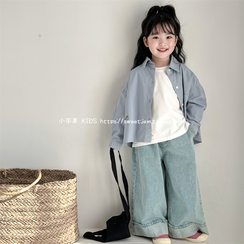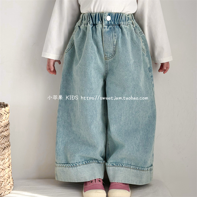 小苹果2025春秋韩国版男女童宝宝百搭宽松牛仔拖地裤儿童洋气裤子