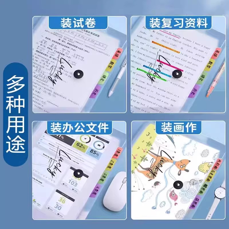 a4文件夹试卷收纳袋多层小学生专用透明插页整理神器初中高中生书夹子分类试卷夹卷子资料册A4纸风琴包大容量