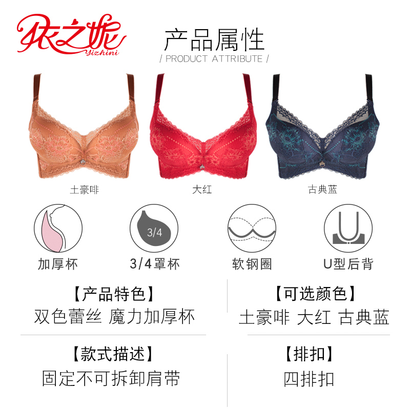 依之妮摩登内衣加厚杯5CM软钢圈4排扣侧收聚拢调整型文胸M1320AA