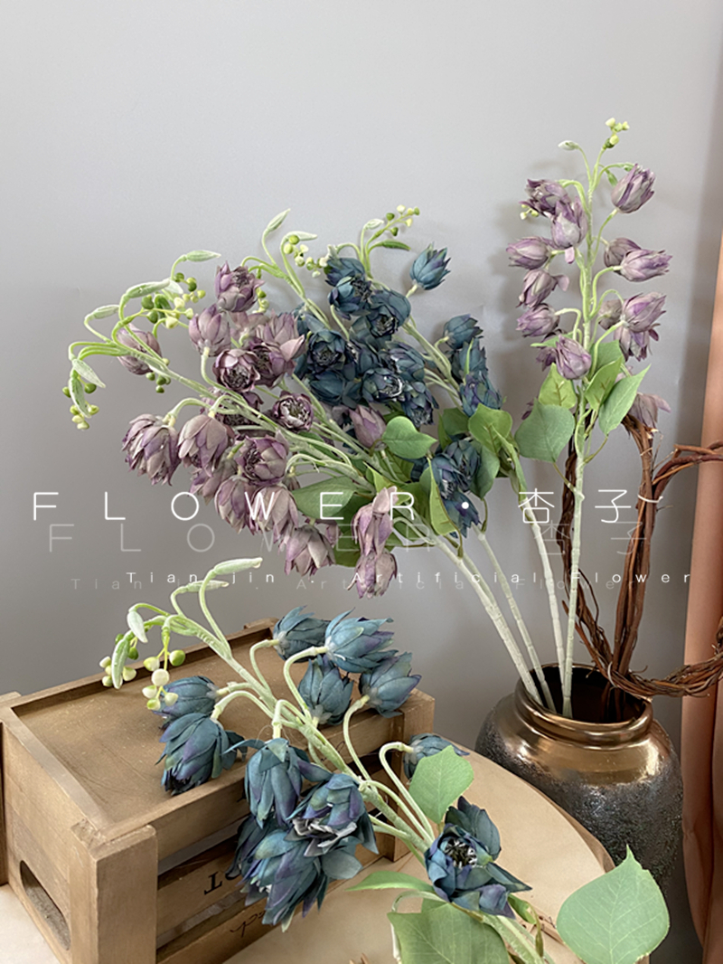原版植绒凤尾兰仿真花女装店摆件假花橱窗软装灯笼花倒挂金钟吊兰