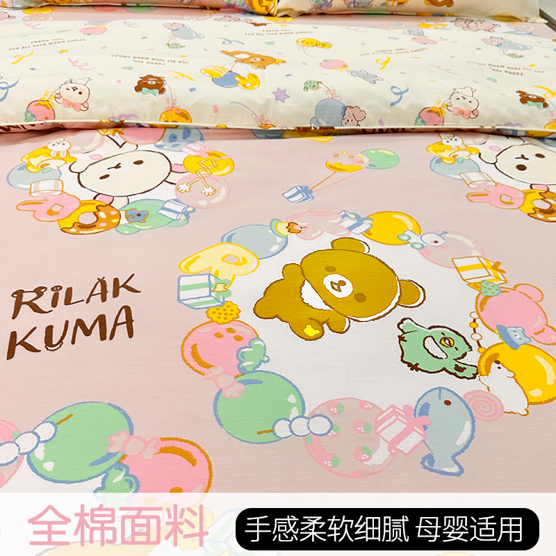 轻松熊四件套 儿童床品三件套 出口 被子 轻松熊床笠 rilakkuma