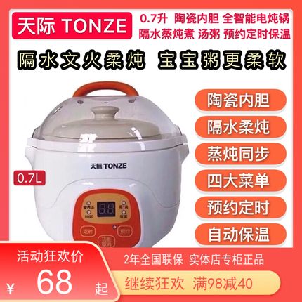 天际隔水炖1-2-3人迷你电炖锅全自动煮粥煲汤宝宝辅食燕窝机0.7升