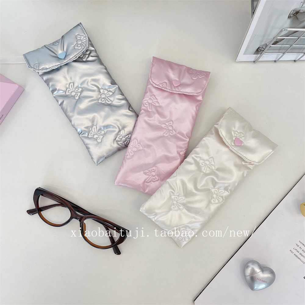 小白兔几PU蝴蝶结眼镜收纳包少女便携充棉柔软墨镜随身眼镜收纳袋