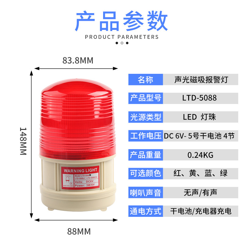 LTD-5088CD干电池便携充电式声光报I警器磁吸警报灯车载爆闪警示