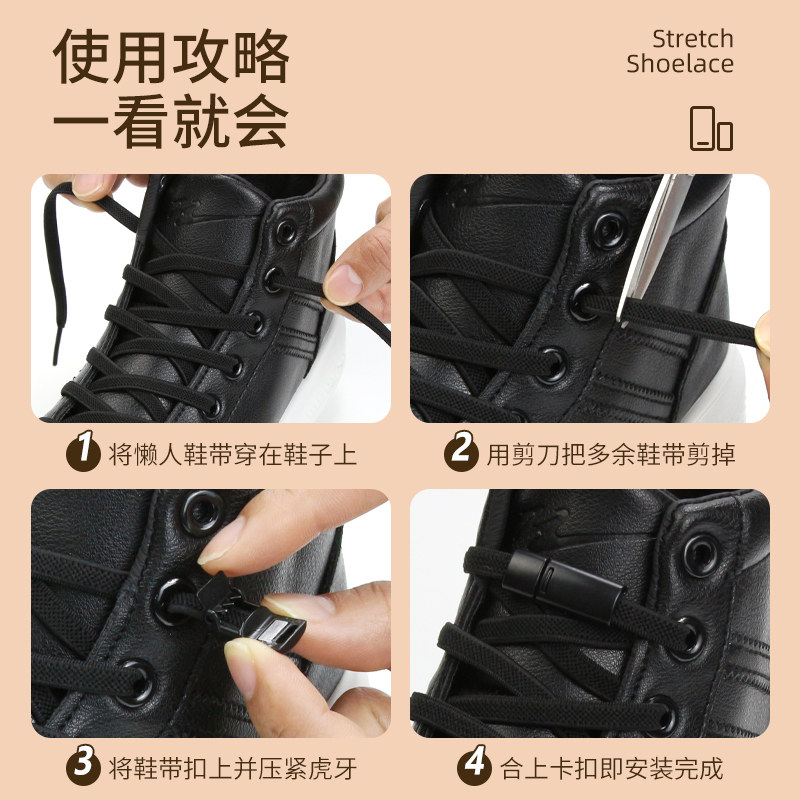 懒人鞋带卡扣男女款空军一号扁平松紧弹力黑白色运动免系鞋带神器
