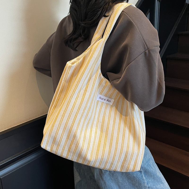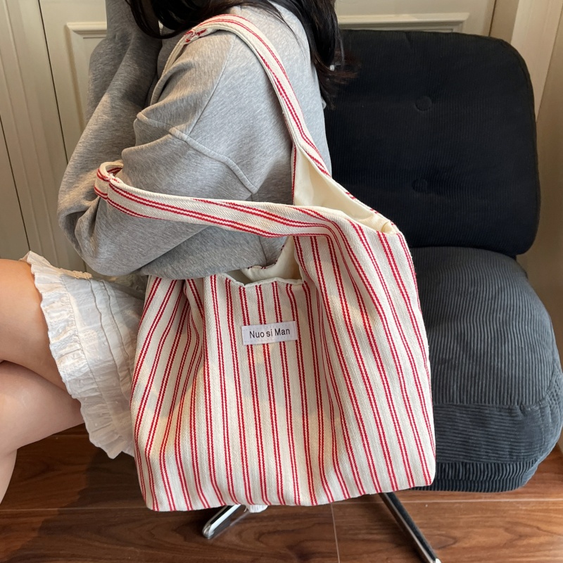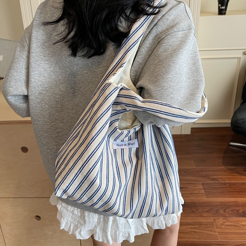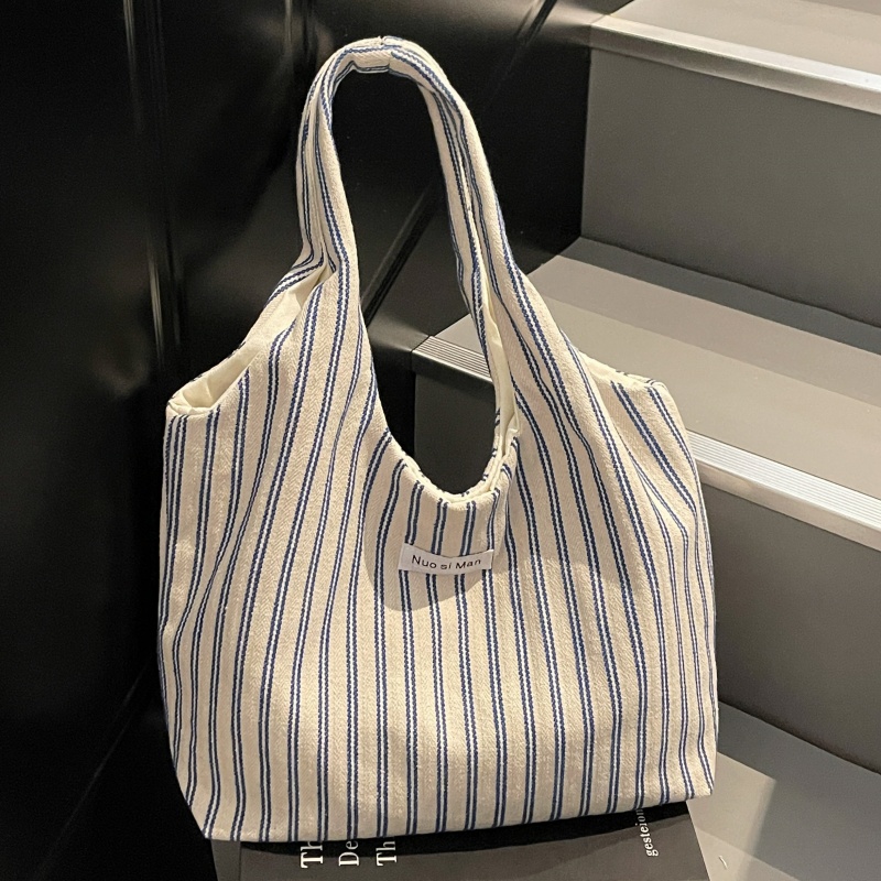 夏季条纹帆布包包女2025新款大容量单肩腋下包小众百搭通勤托特包