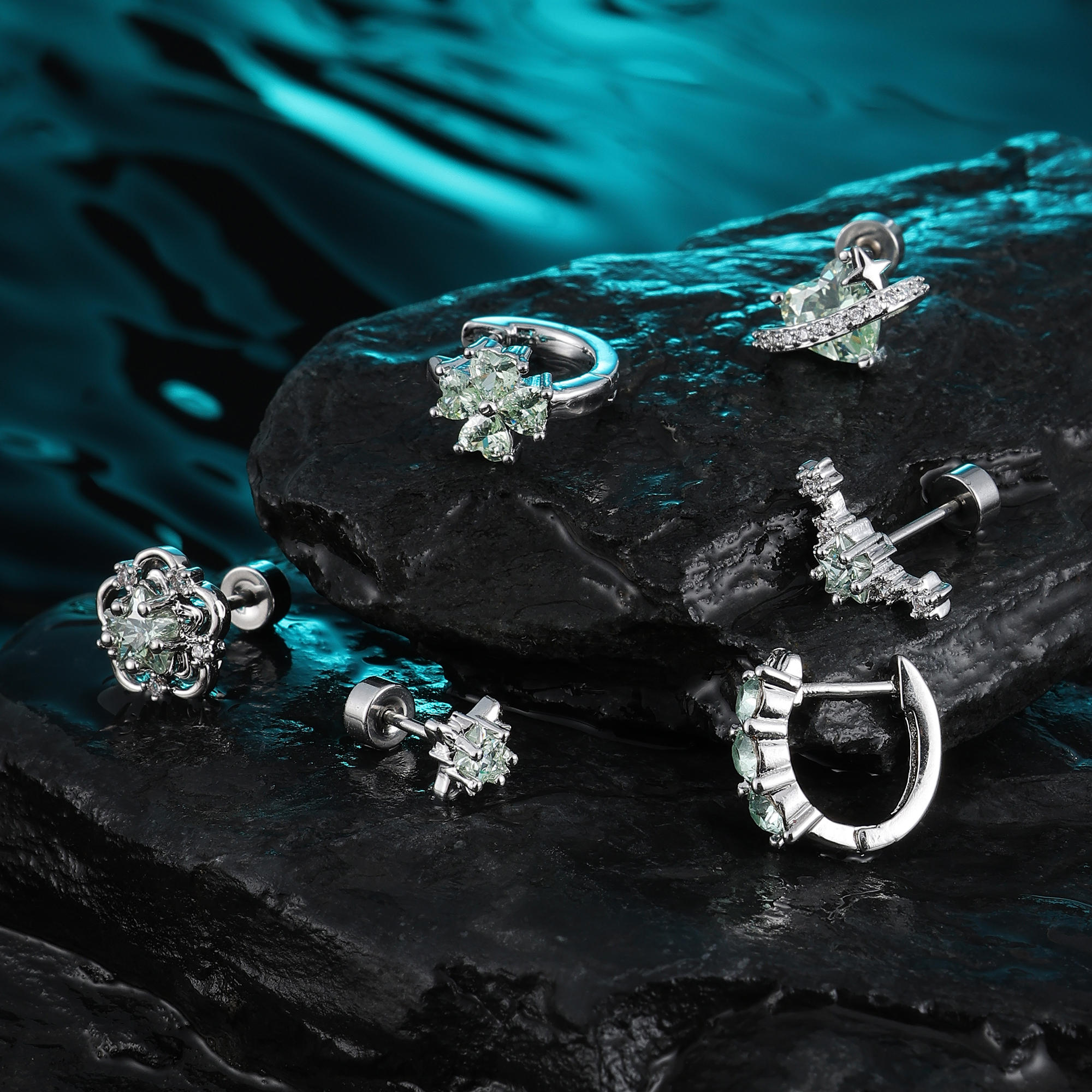 浅绿色星星钛合金耳钉女满天星钛钢锆石耳骨钉耳蜗钉耳环秋冬耳饰