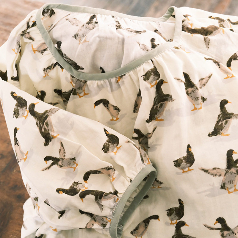 小鸭子睡裙女夏季纯棉纱布圆领宽松大码长裙孕妇连衣裙家居服睡衣