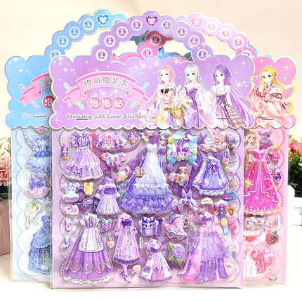 公主换装贴纸女孩穿衣打扮贴贴画3-6岁儿童立体可反复自粘贴玩具