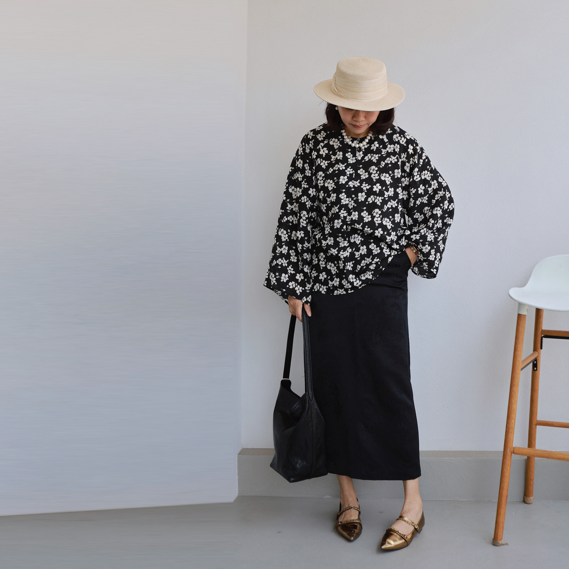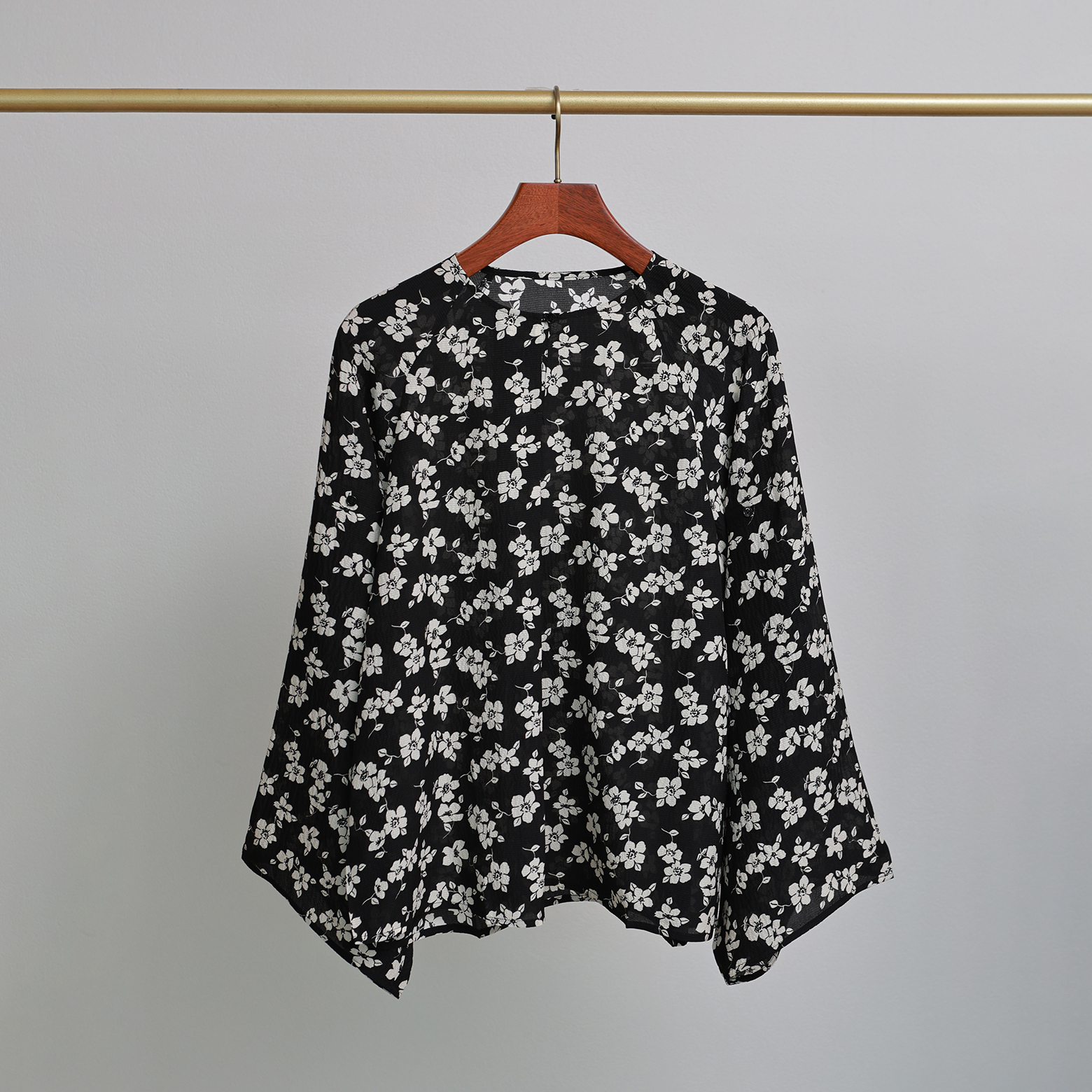 赫本的优雅 黑白花朵 大气可挽袖 百搭知性长袖真丝上衣衬衫