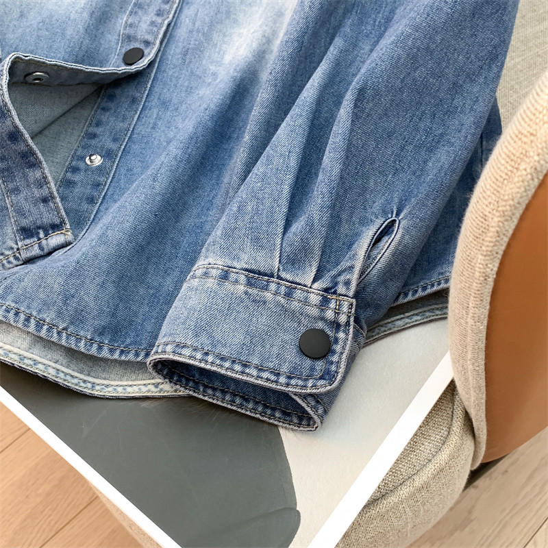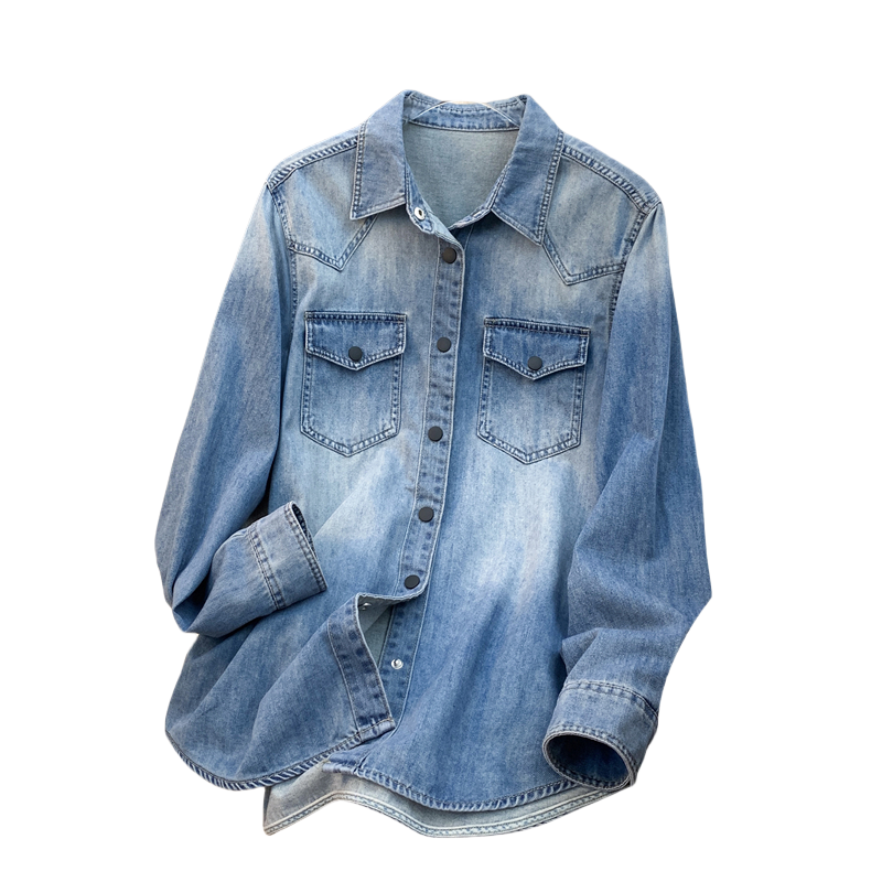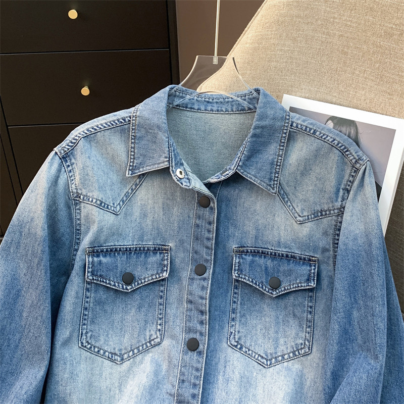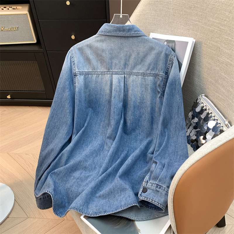 时尚复古水洗蓝色长袖牛仔衬衫女