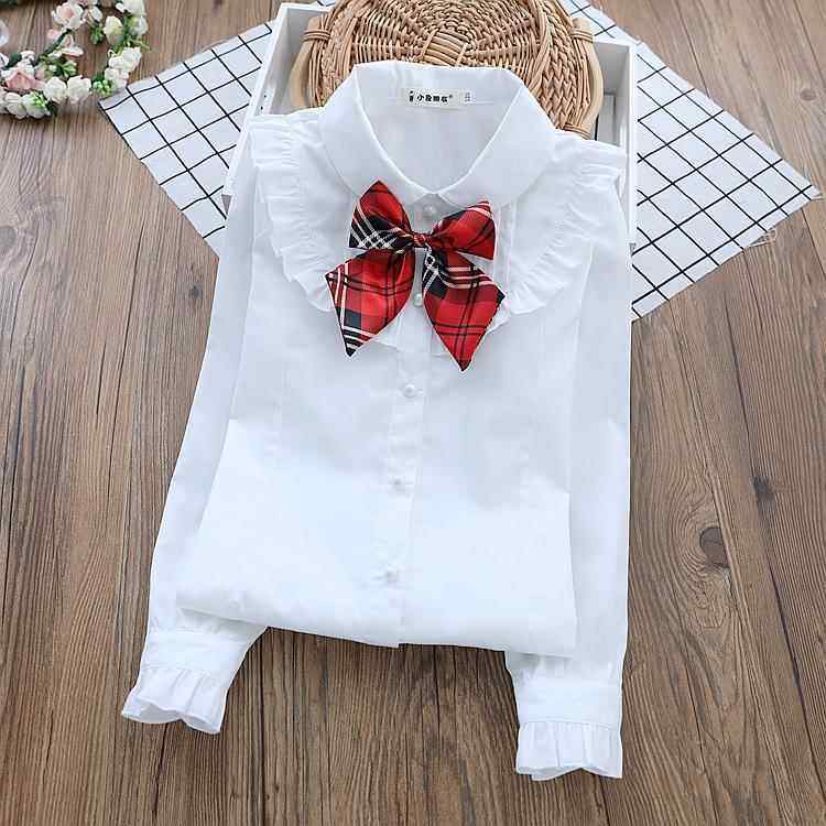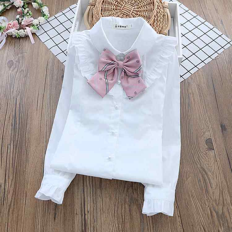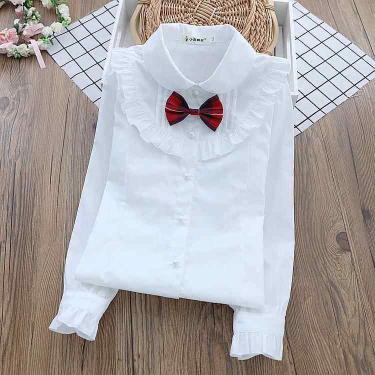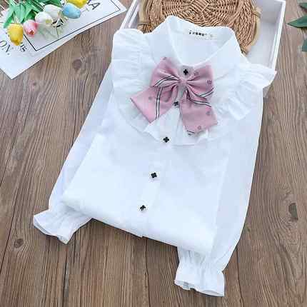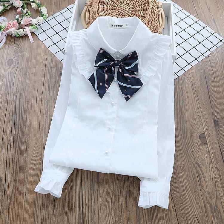 高档女童衬衫长袖纯棉童中大童衬衫翻女派孩白色演出服儿短裙洋领