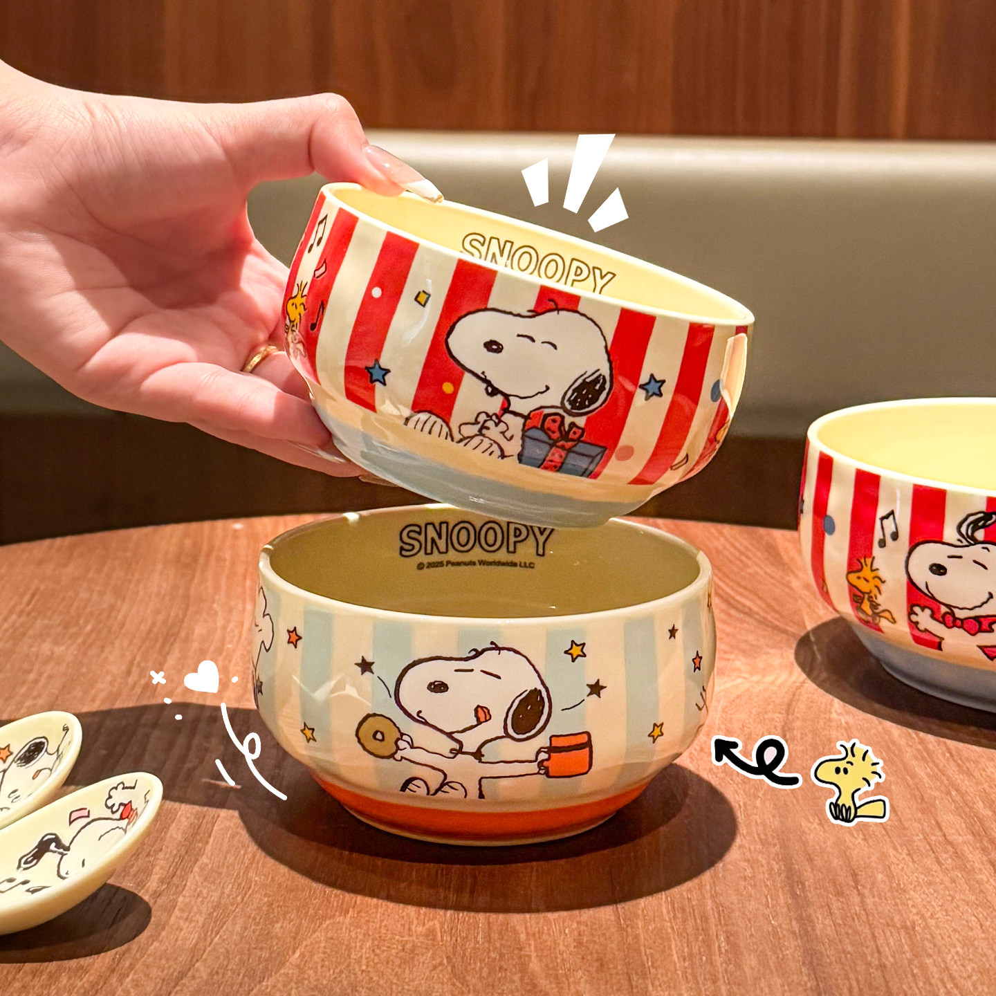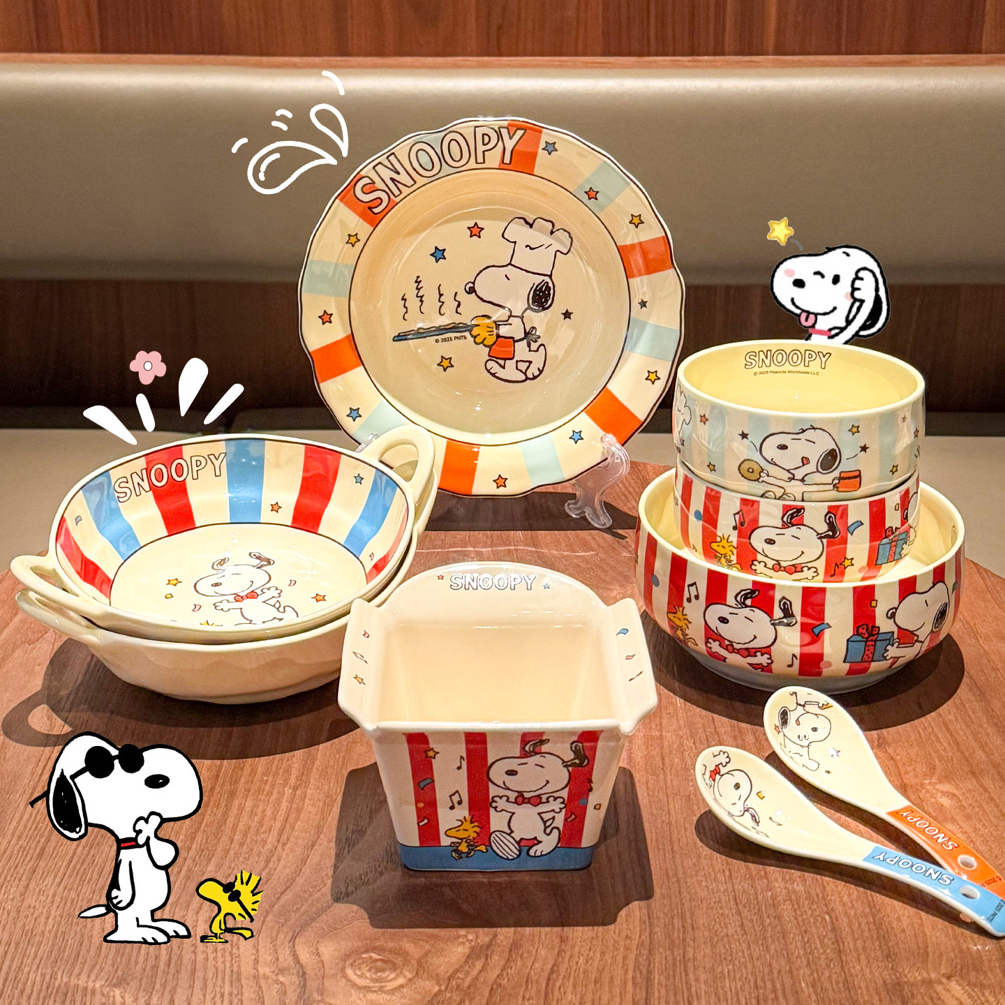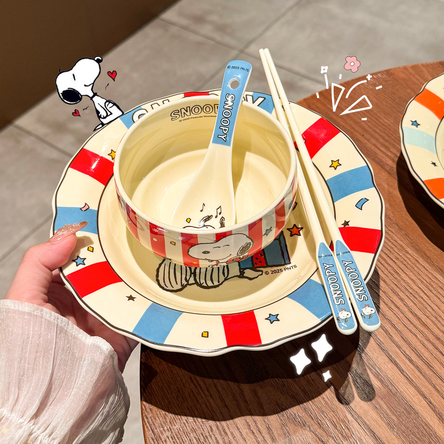 史努比红色条纹碗碟餐具2025新款家用女生可爱碗盘勺子筷子高颜值
