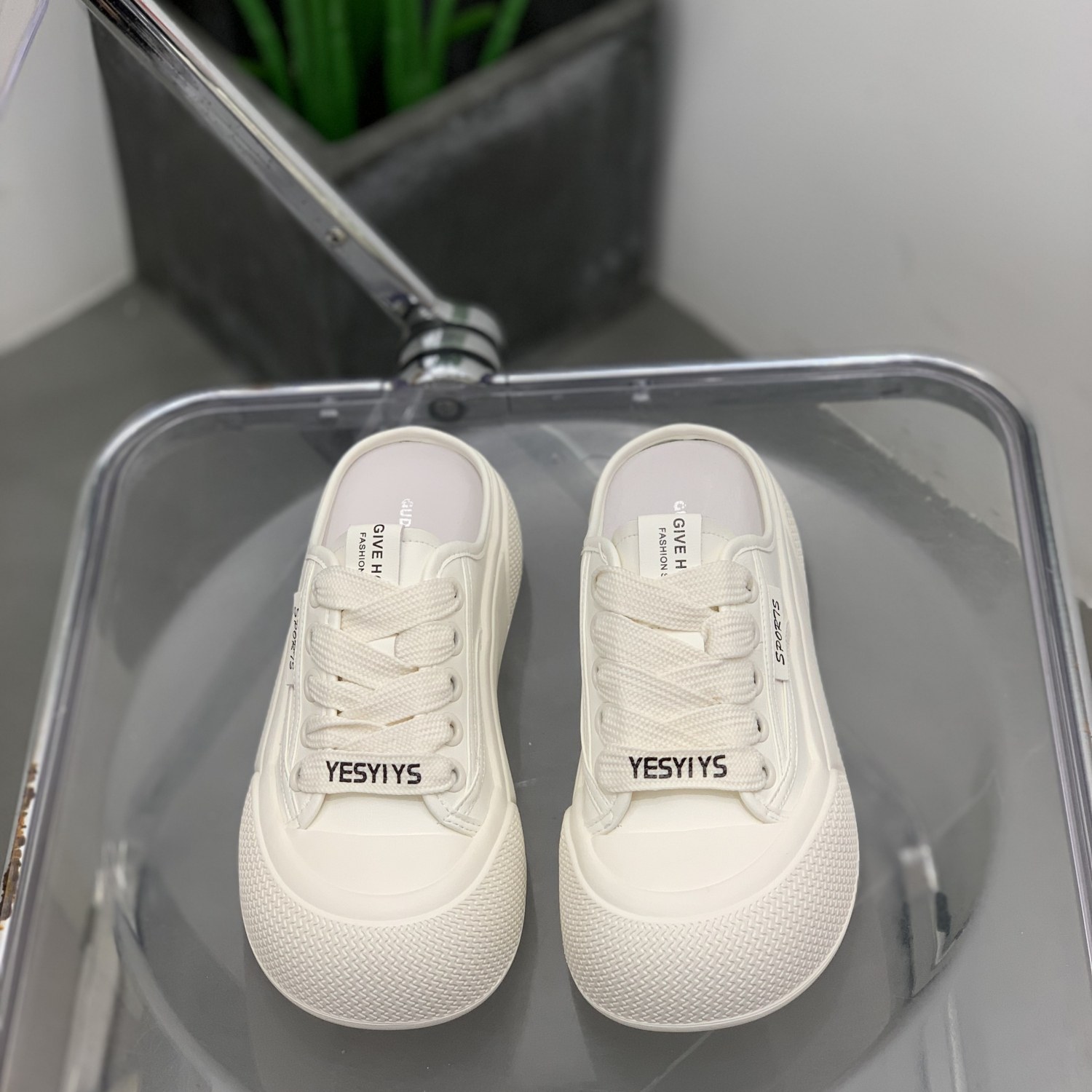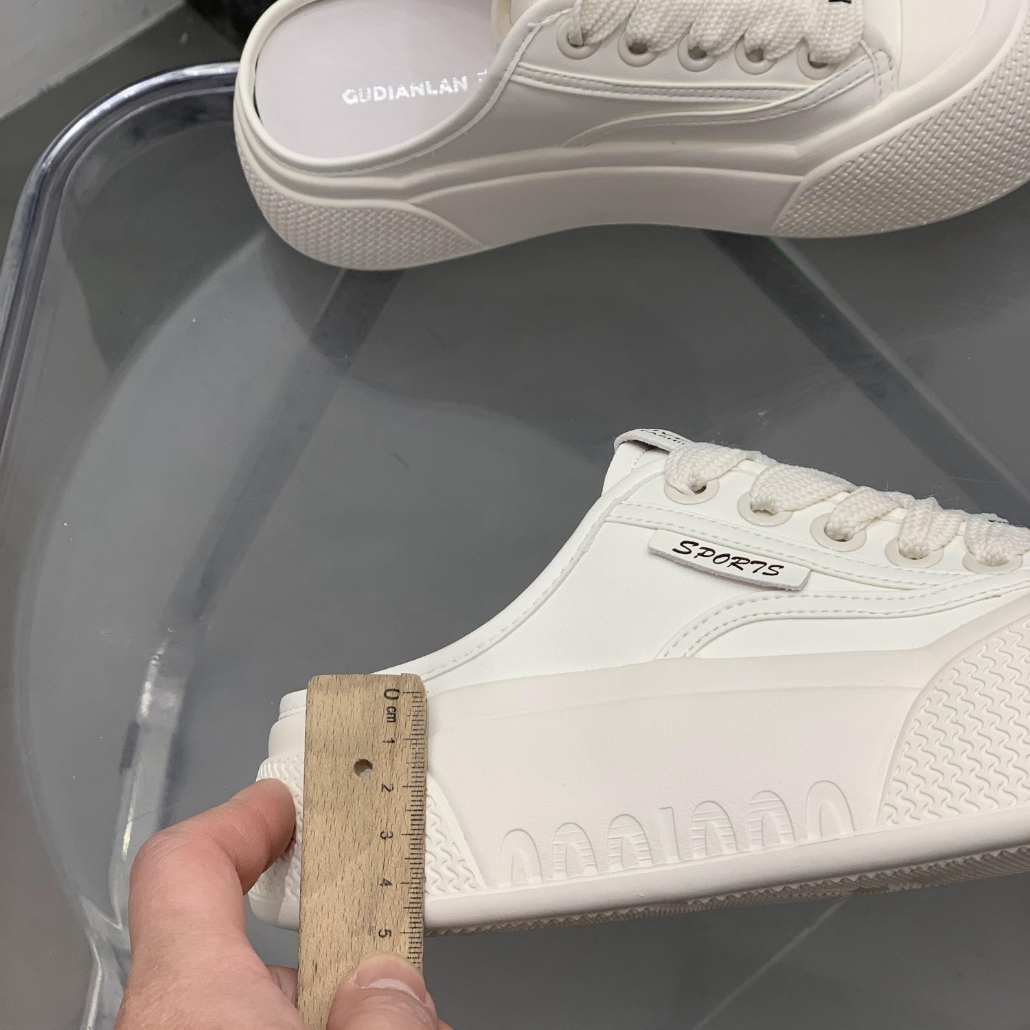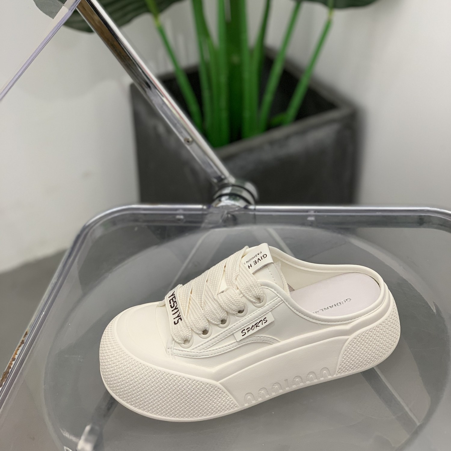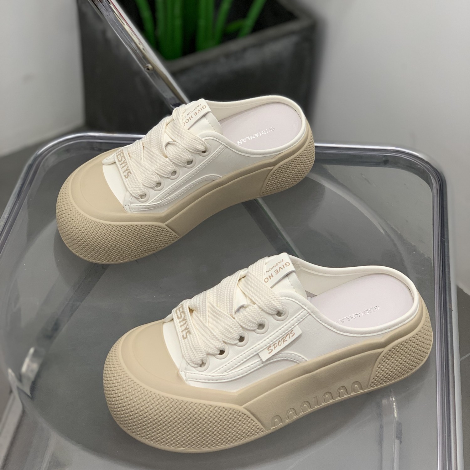 真皮包头半托板鞋女2025年夏季百搭小白鞋女懒人一脚蹬休闲运动鞋
