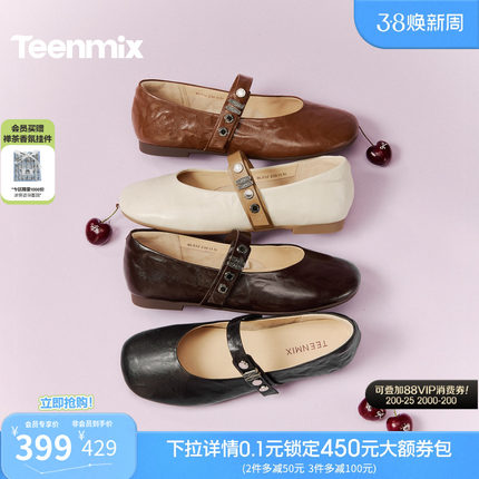 天美意复古软底玛丽珍皮鞋平底鞋女浅口单鞋2026春季新款BL532AQ6